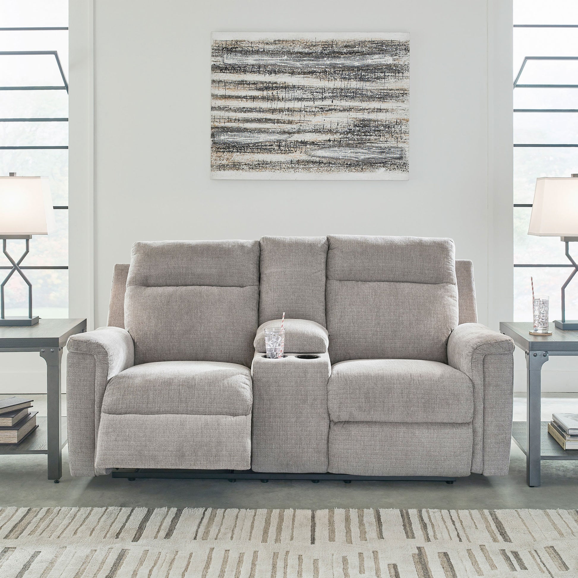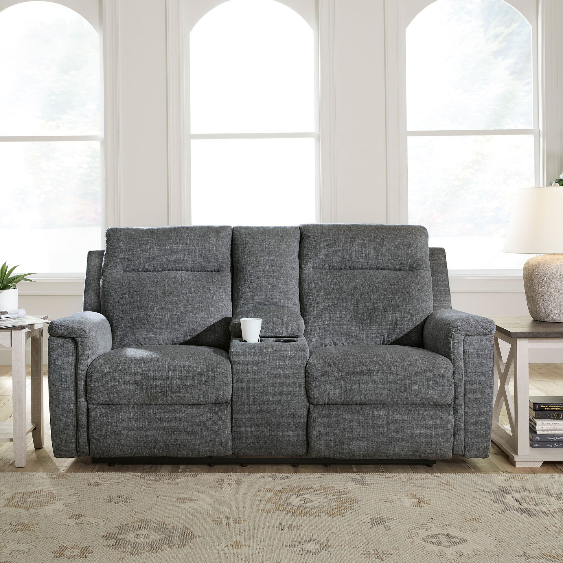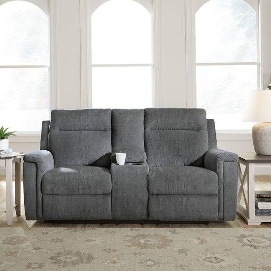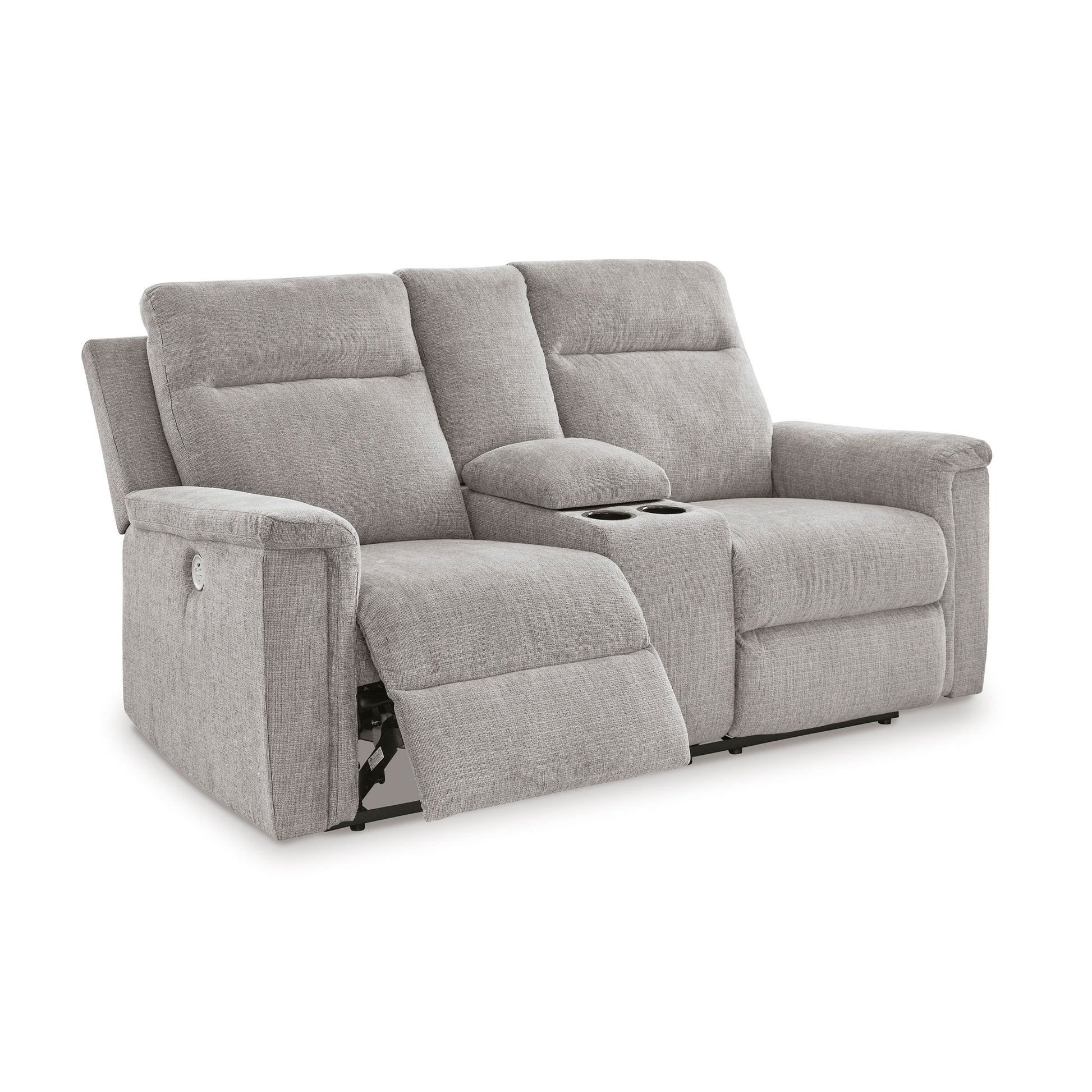 The ability to go from fully upright to relaxed and stretched out, all at the touch of a button, awaits. A beautiful blend of plush upholstery and casual style, this power reclining loveseat with console invites you to sink into ultimate comfort. Easily tuck away remotes or gaming controllers and keep drinks close by with its handy console. Whether you're hosting guests or lounging alone, you’ll find it hard to leave your living room—that’s a given.