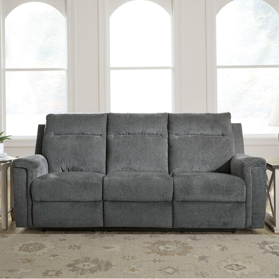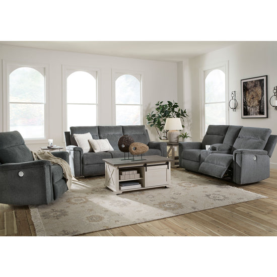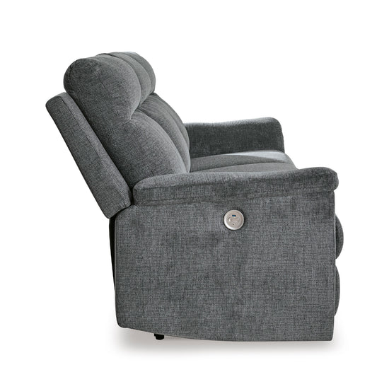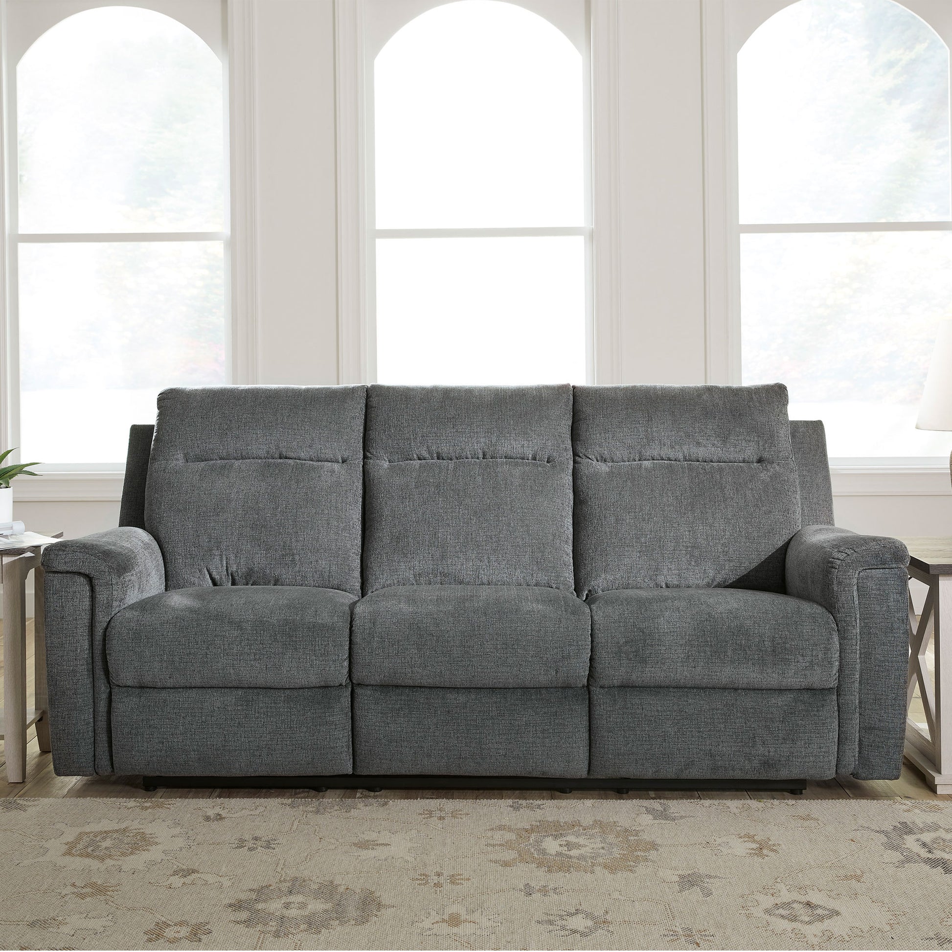 The ability to go from fully upright to relaxed and stretched out, all at the touch of a button, awaits. A beautiful blend of plush upholstery and casual style, the Barnsana power reclining sofa invites you to sink into ultimate comfort. Whether you're hosting guests or lounging alone, you’ll find it hard to leave your living room—that’s a given.