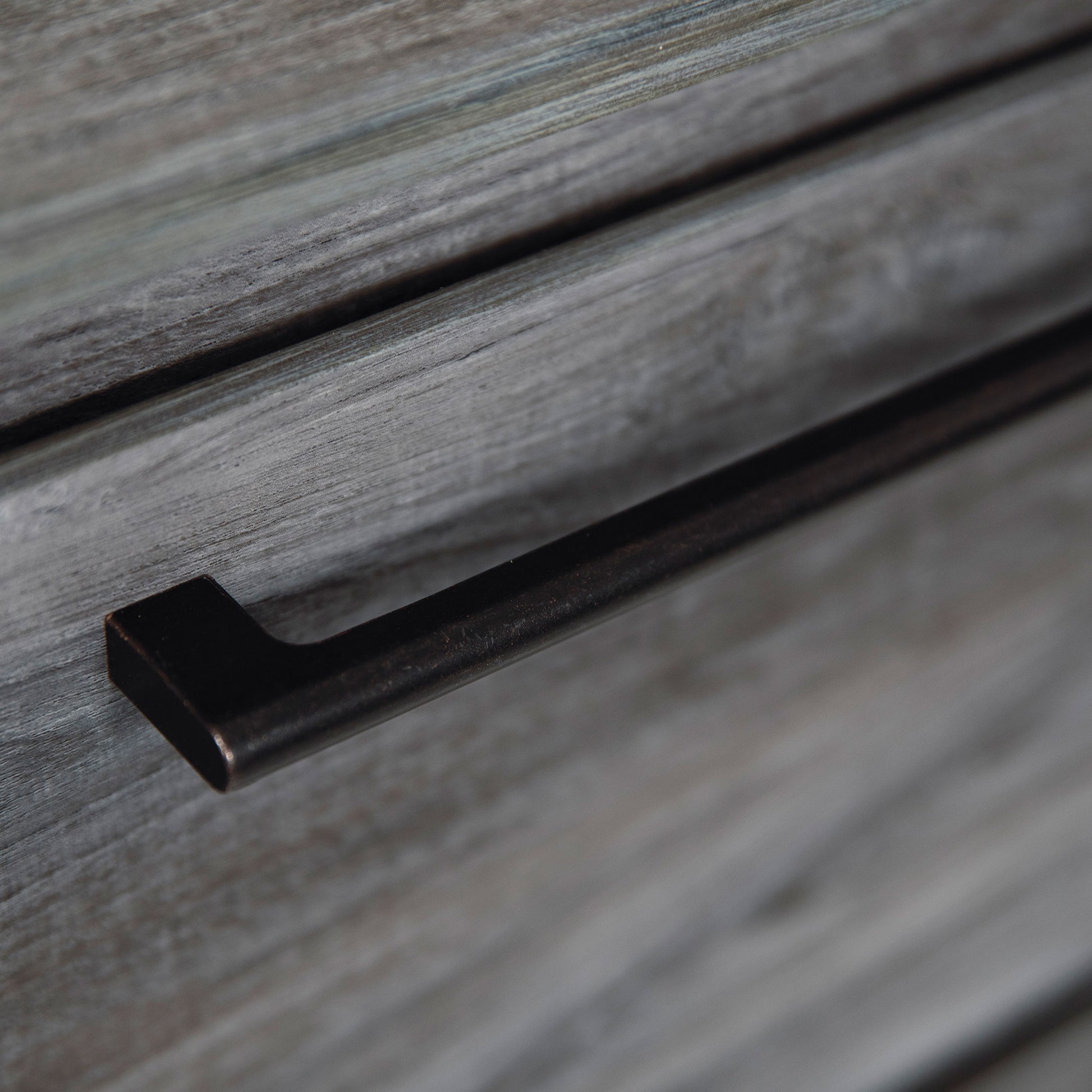 Casually cool coastal design with a driftwood and smoky gray finish over replicated oak grain