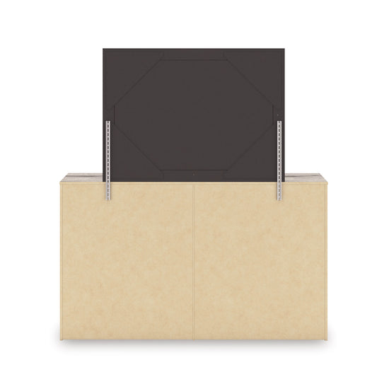 - Made with engineered wood (MDF/particleboard/plywood) and decorative laminate for the right balance of affordability and durability