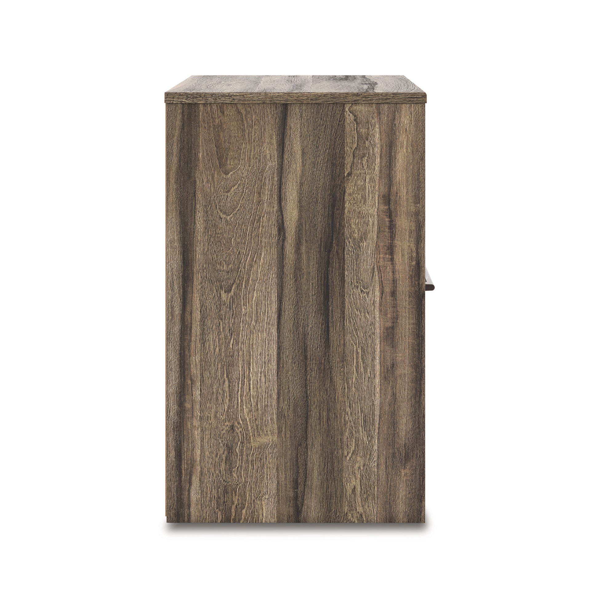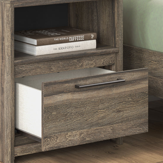 Casually cool style and lots of storage go hand in hand with this nightstand. A weathered brown finish over replicated oak grain creates an easygoing vibe, setting the scene in your restful retreat. The nightstand's clean lines and modern handles provide a fuss-free look. You’ll find its drawer and cubby to be spacious, and the USB charging keeps up with your high-tech lifestyle.