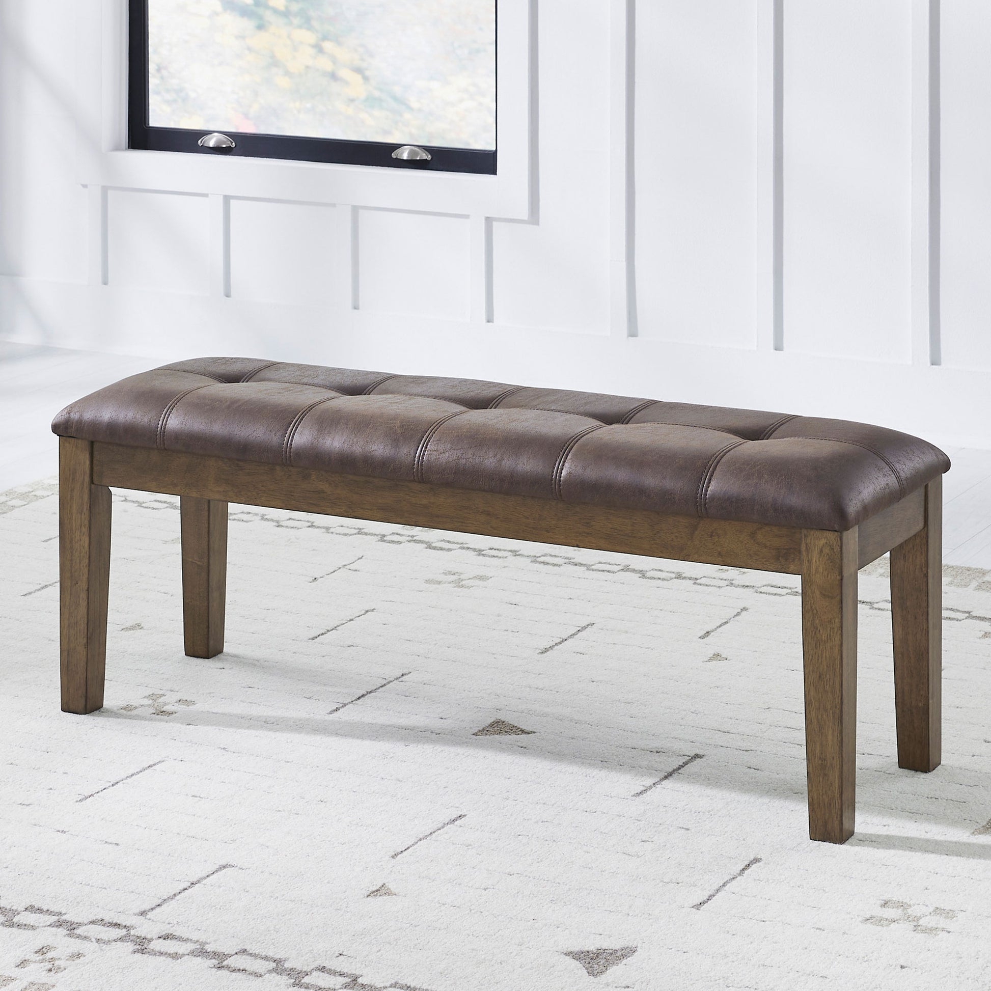 Looking for the ideal seating to host everything from casual family meals to larger gatherings? With an inviting light brown finish and a cushioned seat wrapped in supple faux leather, this handsome dining bench is the perfect piece for making wonderful memories. Cheers to that.
