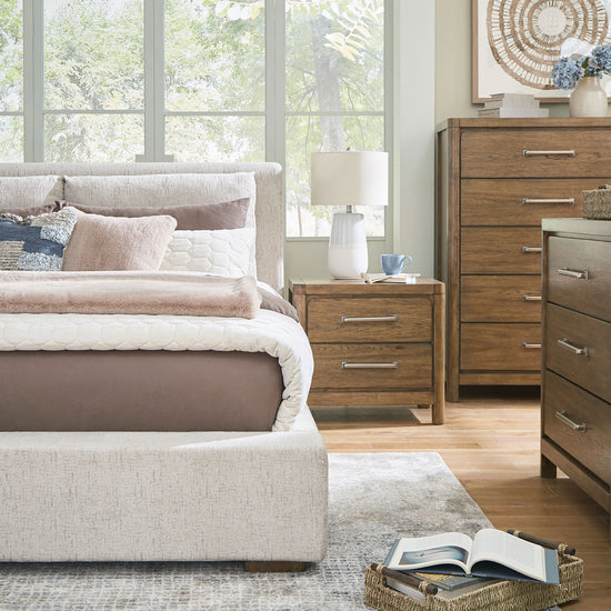The Cabalynn Bedroom Set sits comfortably at the intersection of modern lodge and farmhouse aesthetics. Warm and welcoming, each piece reflects your inviting disposition through charming architectural details and a light brown glazed finish that highlights the natural wood grain. Thoughtful design meets everyday function, with practical features like smooth-gliding drawers, built-in USB ports, and a soft, upholstered headboard that keeps comfort front and center.