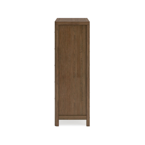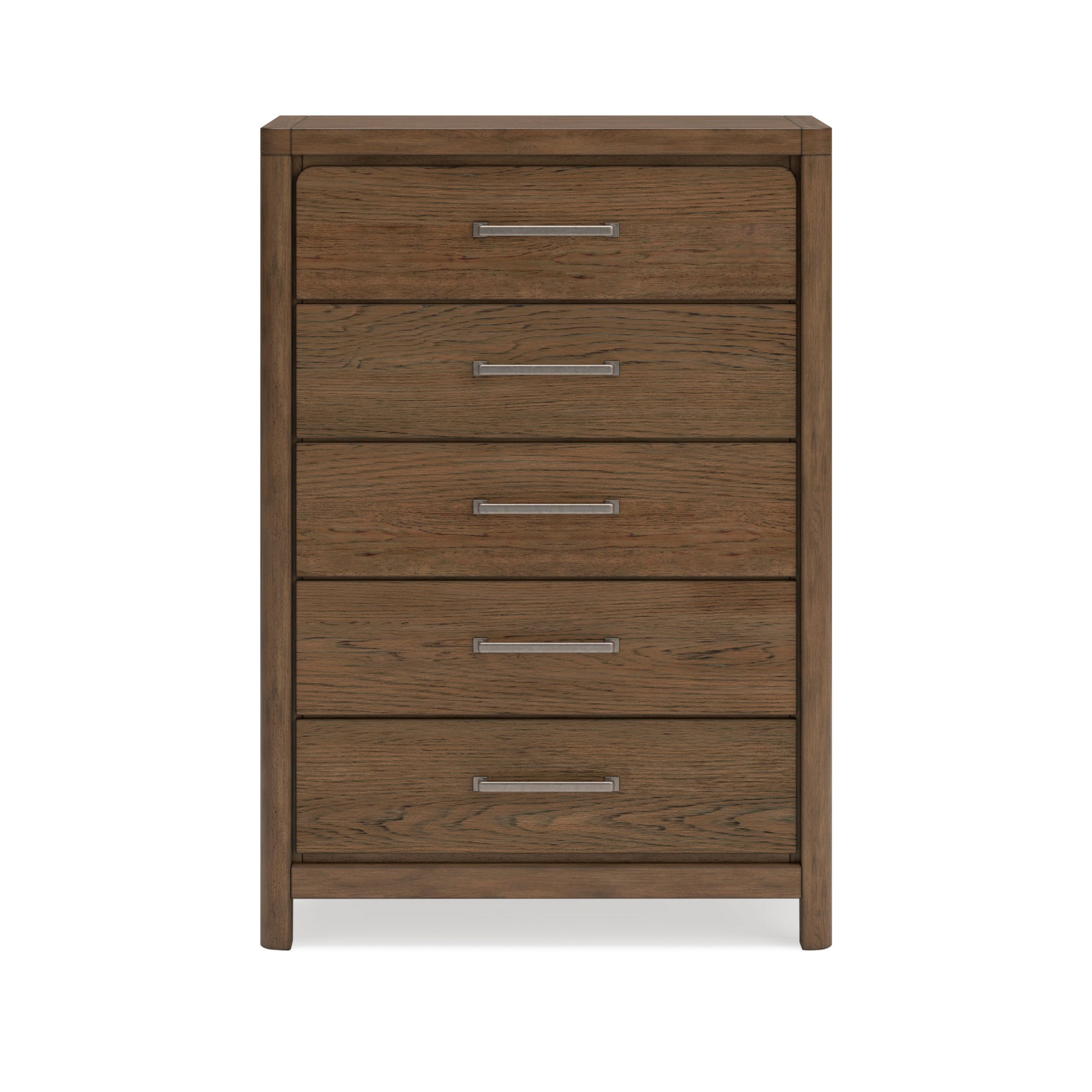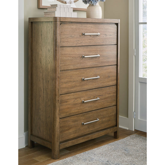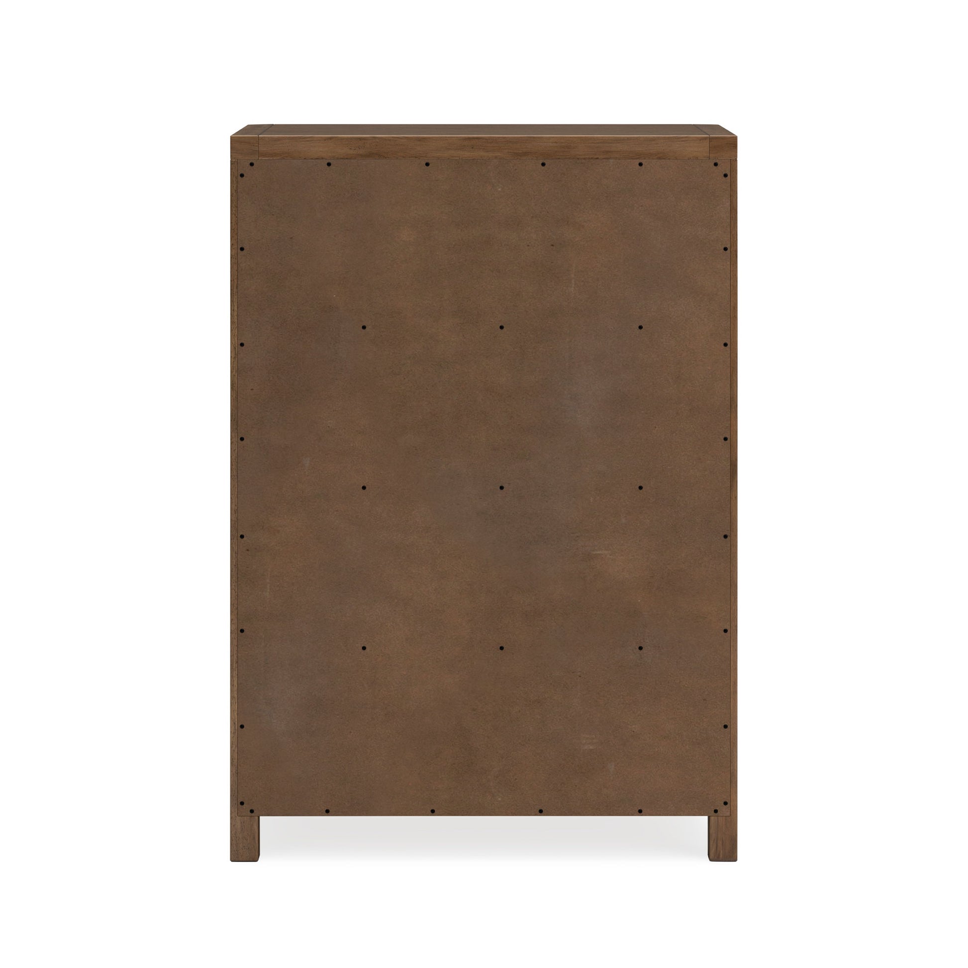 This chest sits comfortably at the intersection of modern lodge and farmhouse aesthetics. Your warm and welcoming disposition is reflected in the charming architectural elements and light brown glazed finish. Even with its poise, the chest remains practical. Smooth-gliding drawers tuck away necessities, defining your bedroom with reliable function and style.