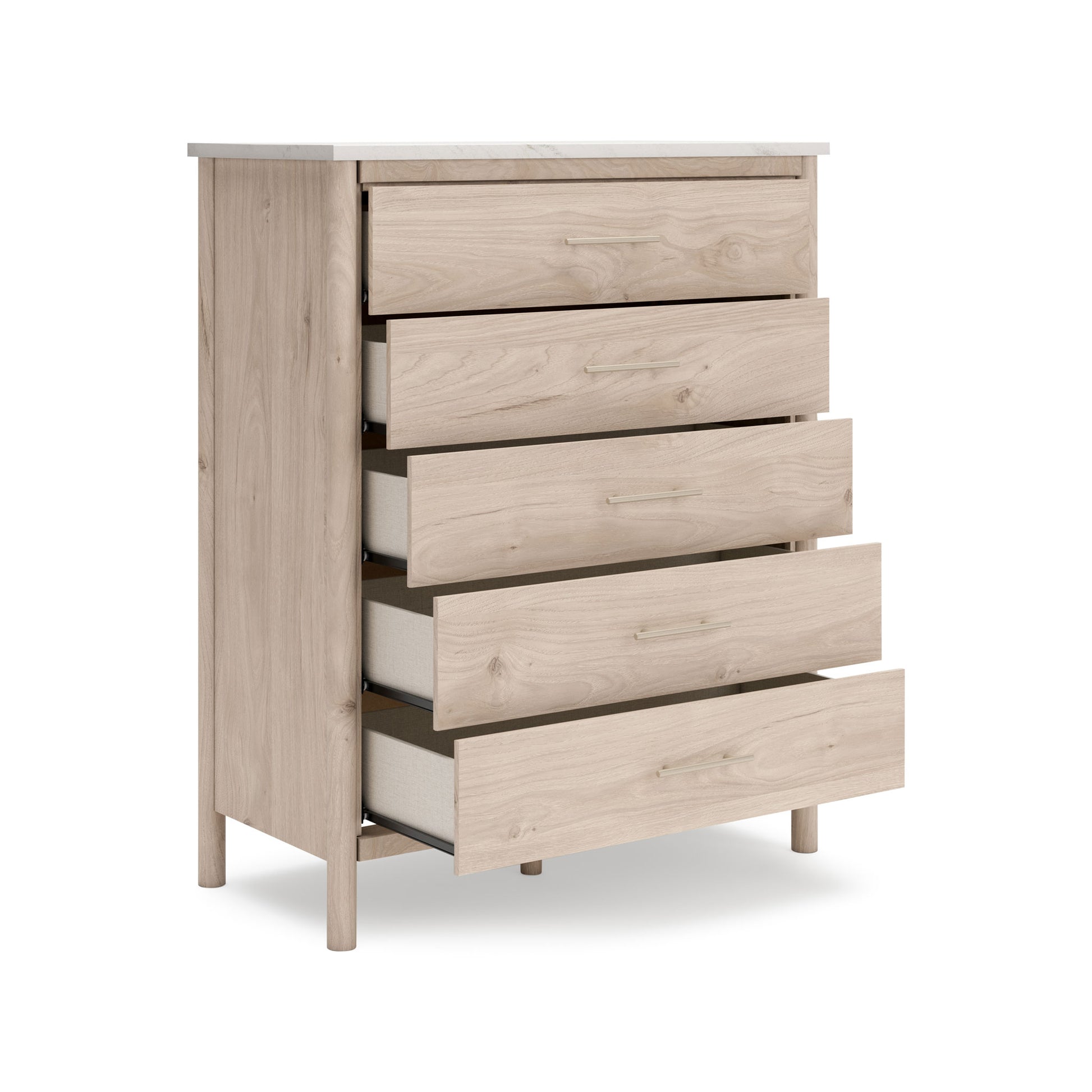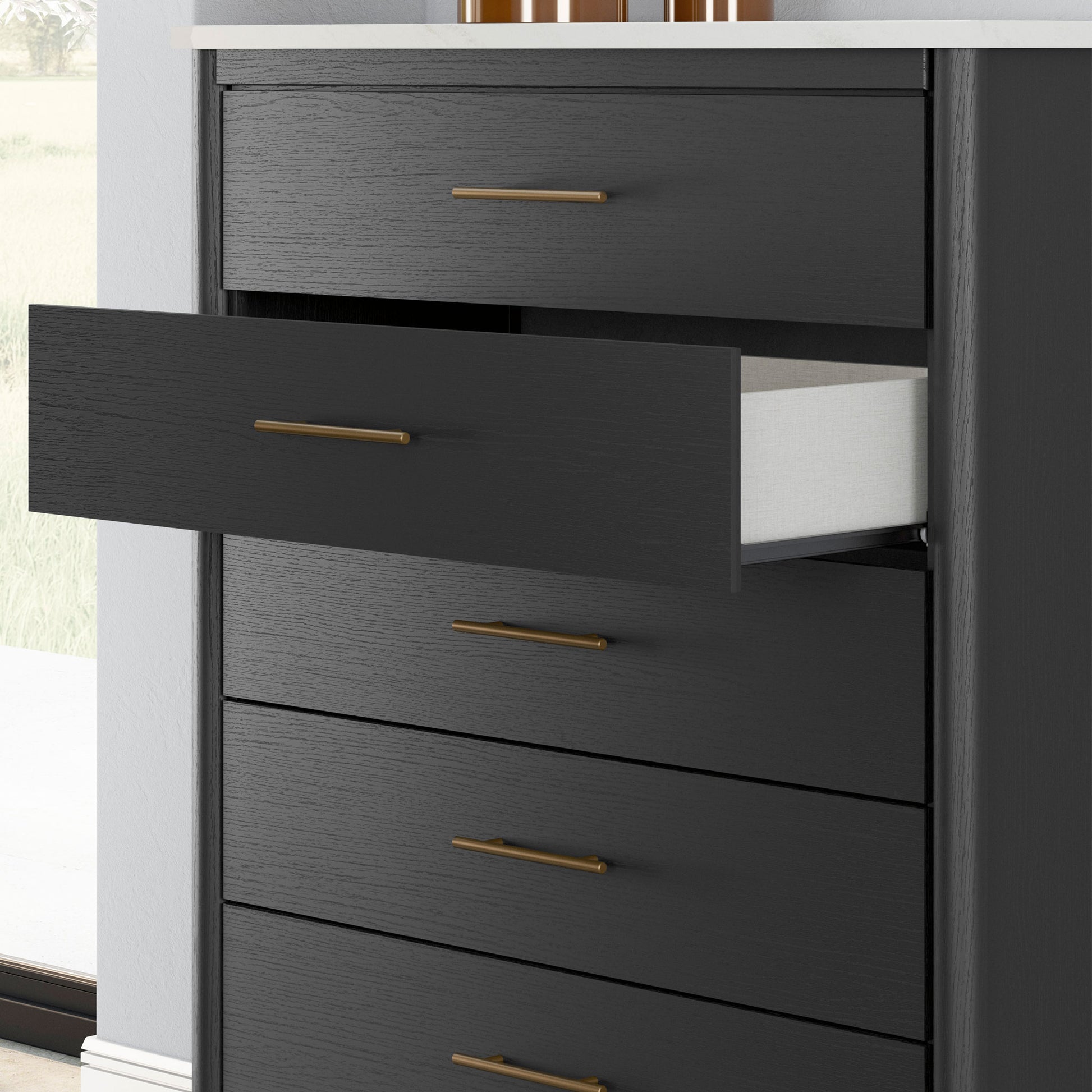 Transform your bedroom with this chest of drawers. With its clean lines and replicated marble top, it exudes a minimal and sophisticated boho style. Tailor your space and create the perfect environment for sweet dreams.
