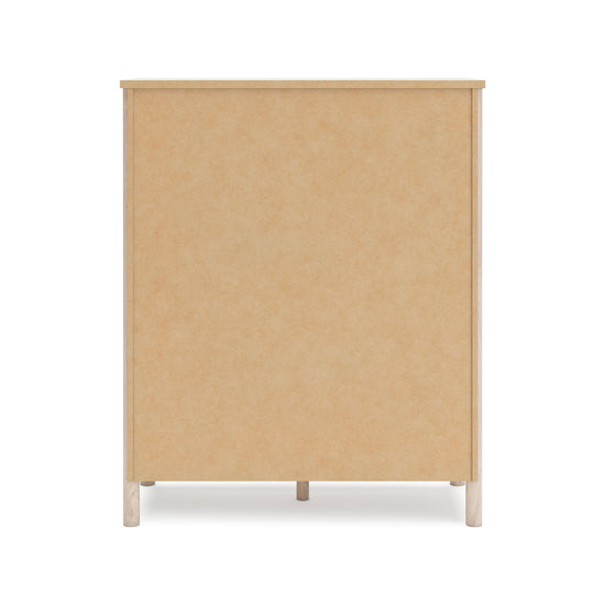 - Drawer interiors are lined with a faux linen laminate for a clean, finished look