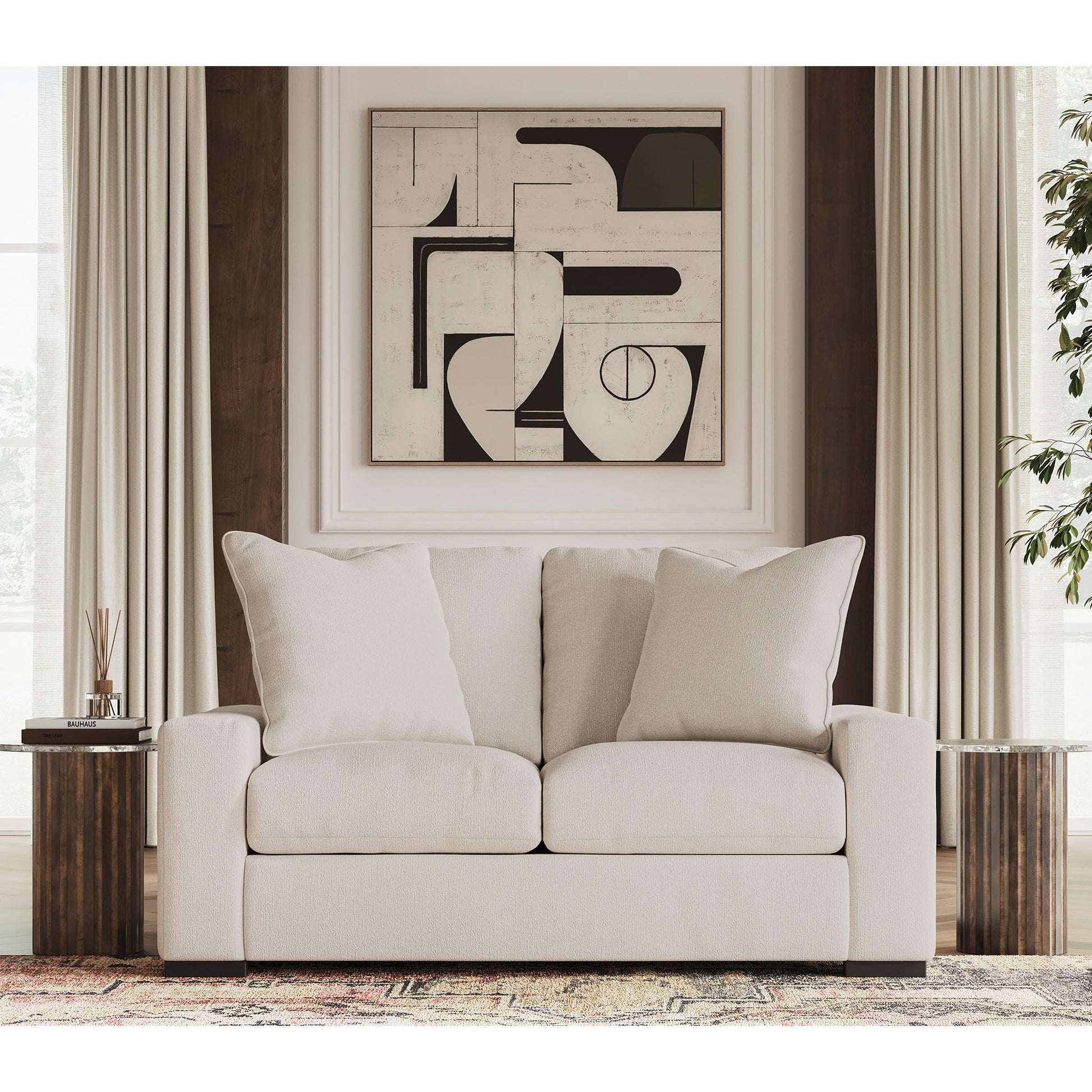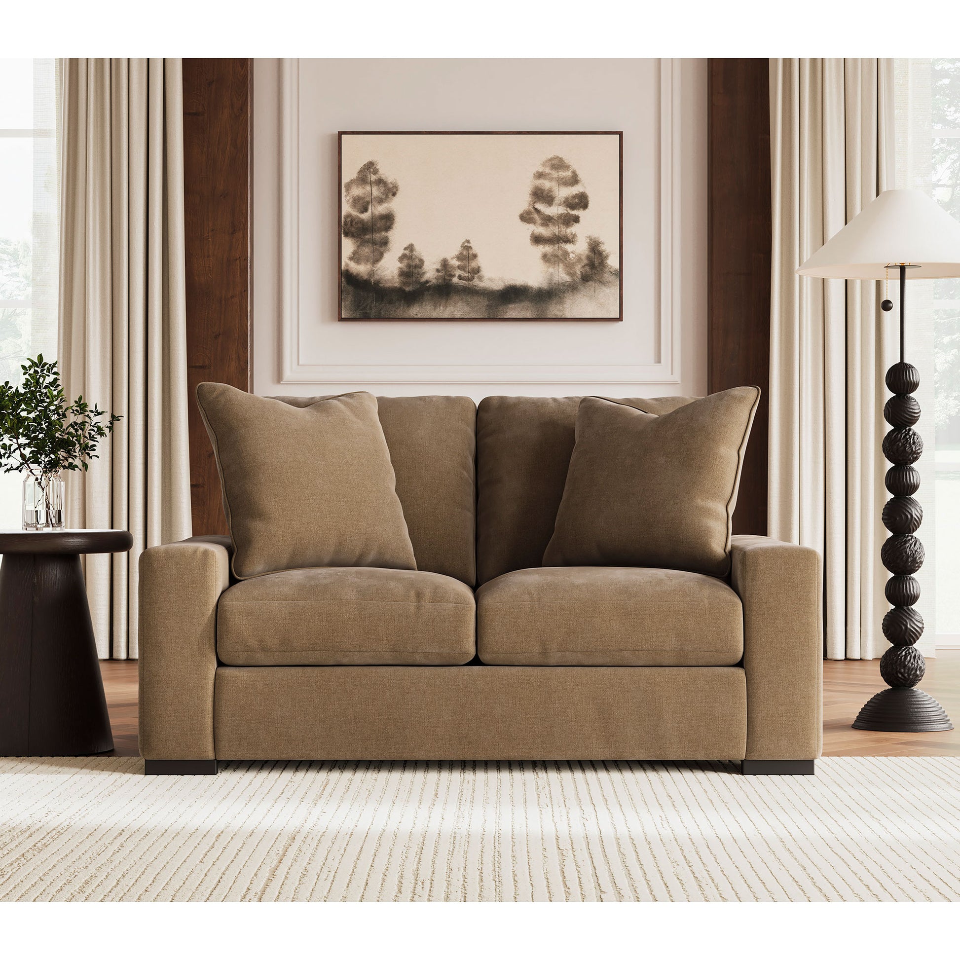 A tailored approach to enduring comfort and versatility. This loveseat unites a sculptural silhouette with plush sable brown velvet or soft oyster white boucle to create the essence of quiet sophistication. It elevates your space while creating a genuinely inviting centerpiece for your home.