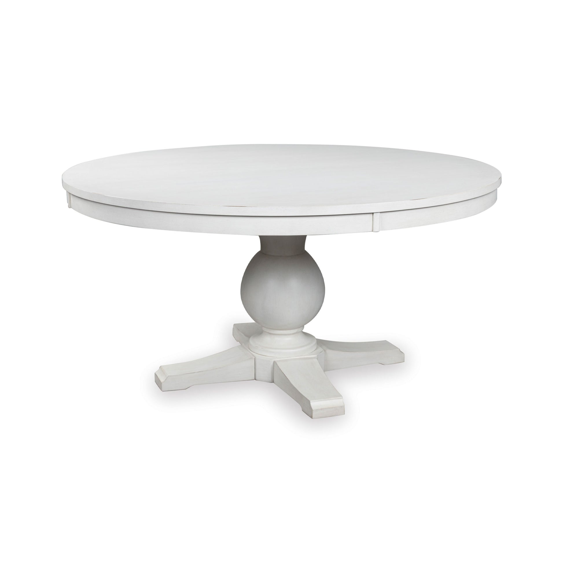 Relaxed living and cozy comfort—that’s what traditional farmhouse design is all about. And what better way to embrace your love of rustic country style than with this dining table. Celebrating the beauty of simplicity, its thick antiqued white top and hearty pedestal base marry functionality with classic appeal for a fresh feel. This piece effortlessly pairs with assorted chairs in the collection for an eclectic look.