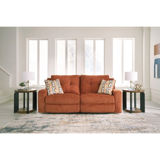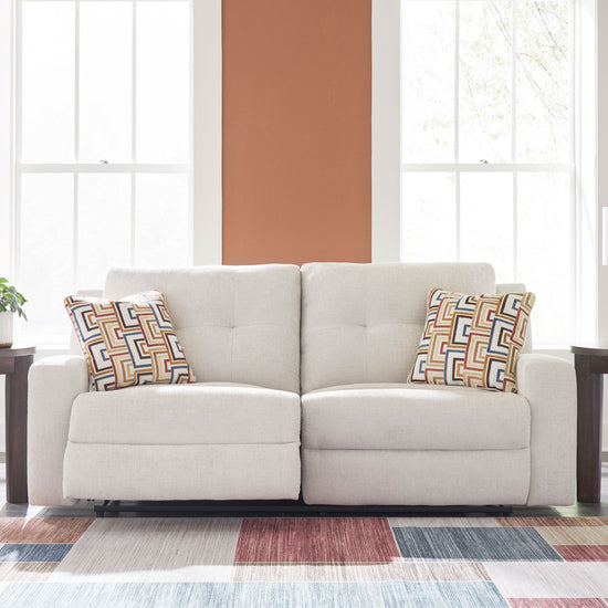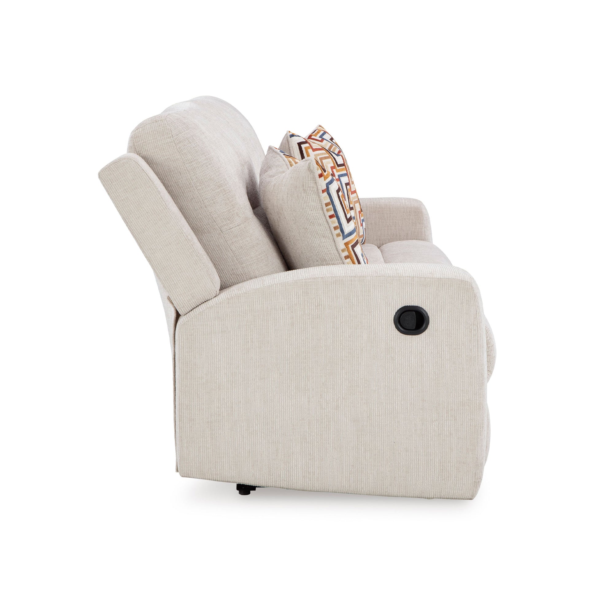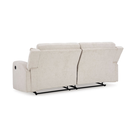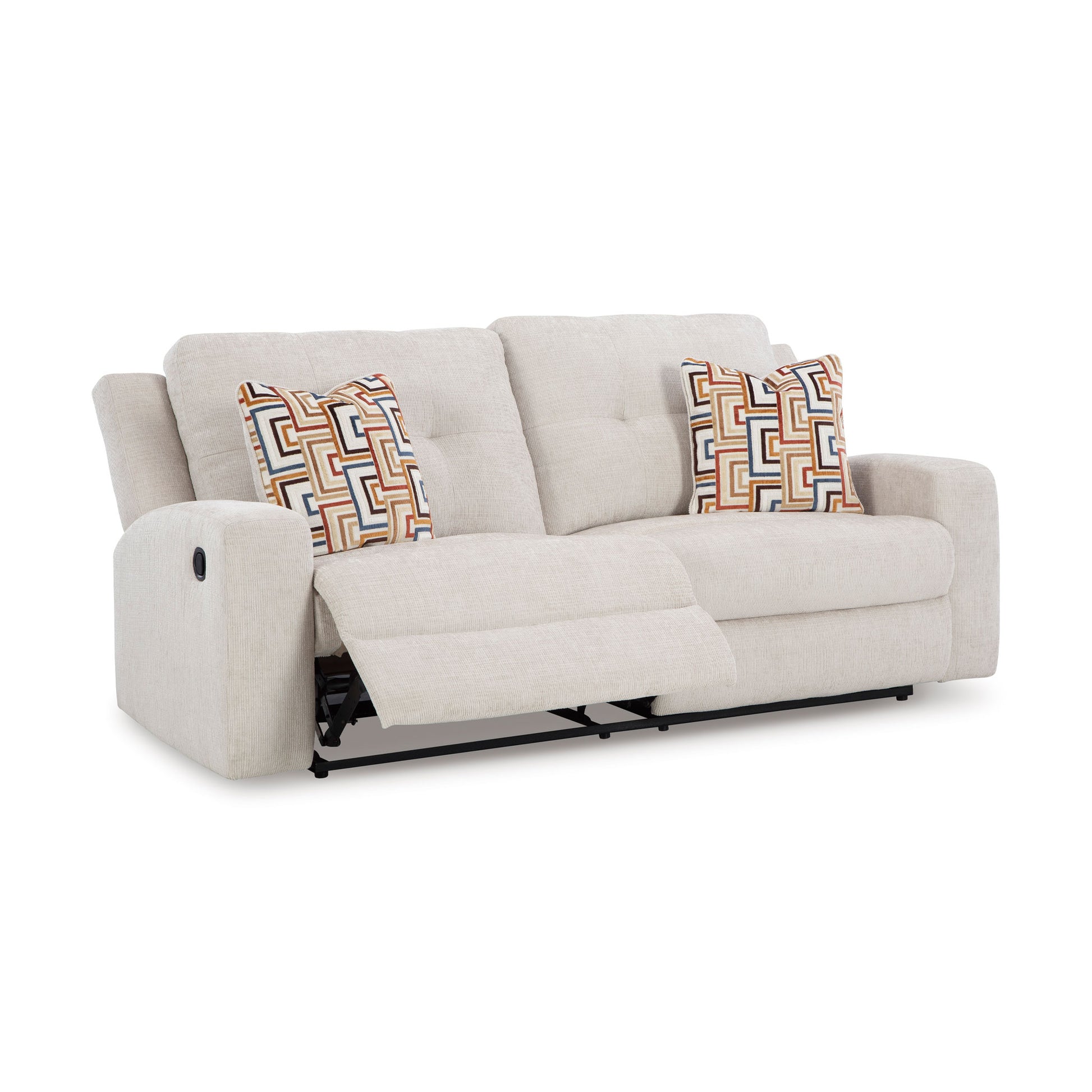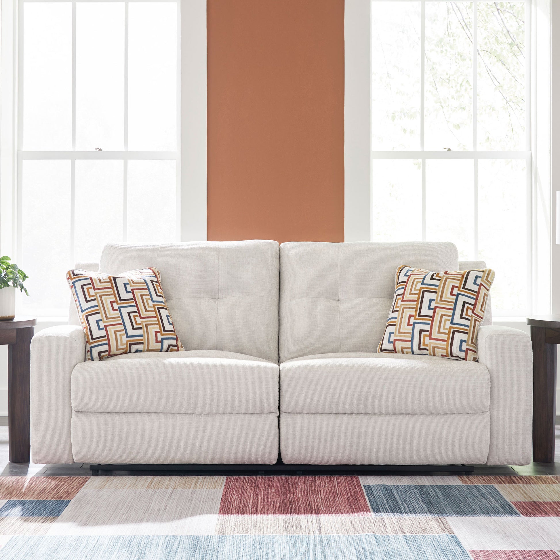 This reclining sofa invites you to a luxuriously soft lounging experience. The chic hue fits right in with contemporary color palettes. A tufted back keeps the look right on trend. Balancing style and function, its pull tab reclining effortlessly takes you to relaxation mode.