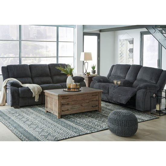 Built for luxury, this power reclining sofa lets you kick back in reliable style. The thick, softly textured chenille upholstery provides a comfy surface on which to lounge. With bustle back construction and thickly cushioned armrests, this piece gives you the dependable support you need to unwind while the handy USB port provides the power to keep your devices going.