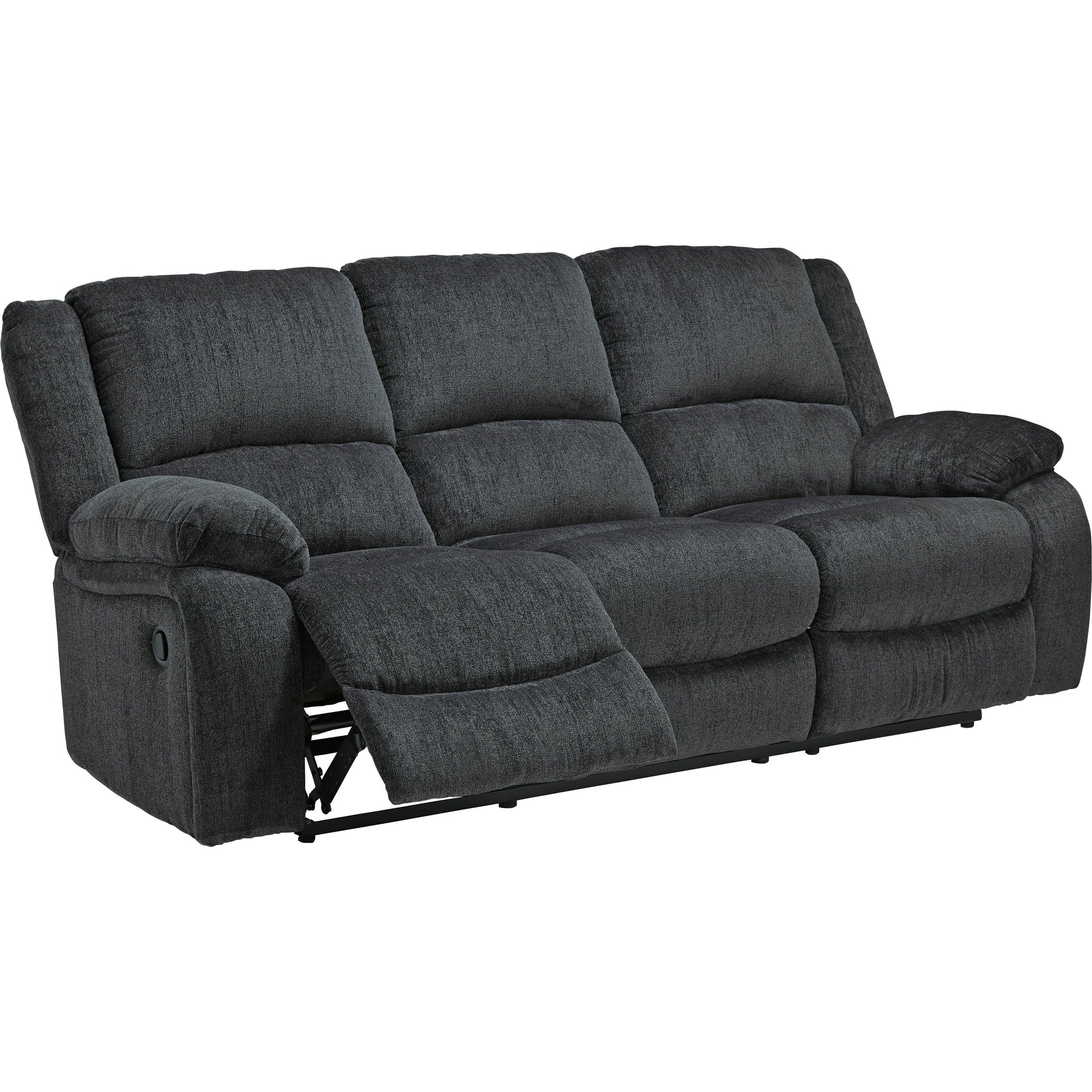 Built for luxury, this reclining sofa lets you kick back in reliable style. The thick, softly textured chenille upholstery provides a comfy surface on which to lounge. With bustle back construction and thickly cushioned armrests, this piece gives you the dependable support you need to unwind after a trying day.