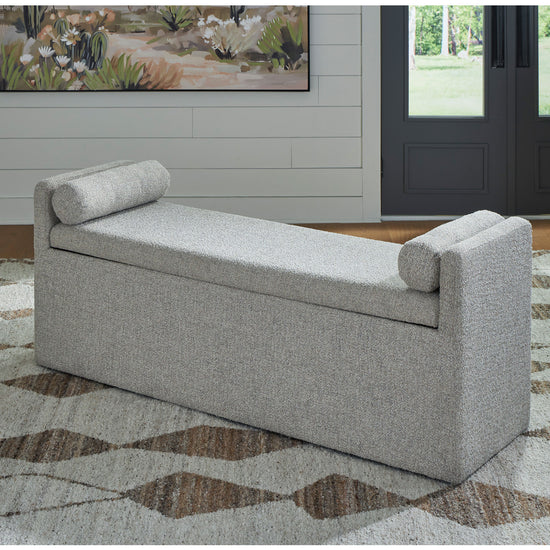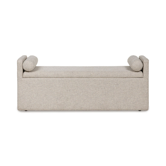 This upholstered dining bench brings a rustic vibe to urban contemporary design. It's a modern approach to everyday function, with storage hidden under the seat. And the bench's neutral color is stunningly simple, allowing it to coordinate seamlessly with your existing decor.