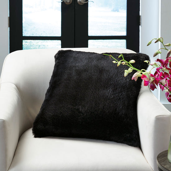 Soft, subtle and sensational. The plush feel of this faux rabbit fur pillow will drive you wild. Its black hue pairs with a variety of decor, from casual to contemporary.
