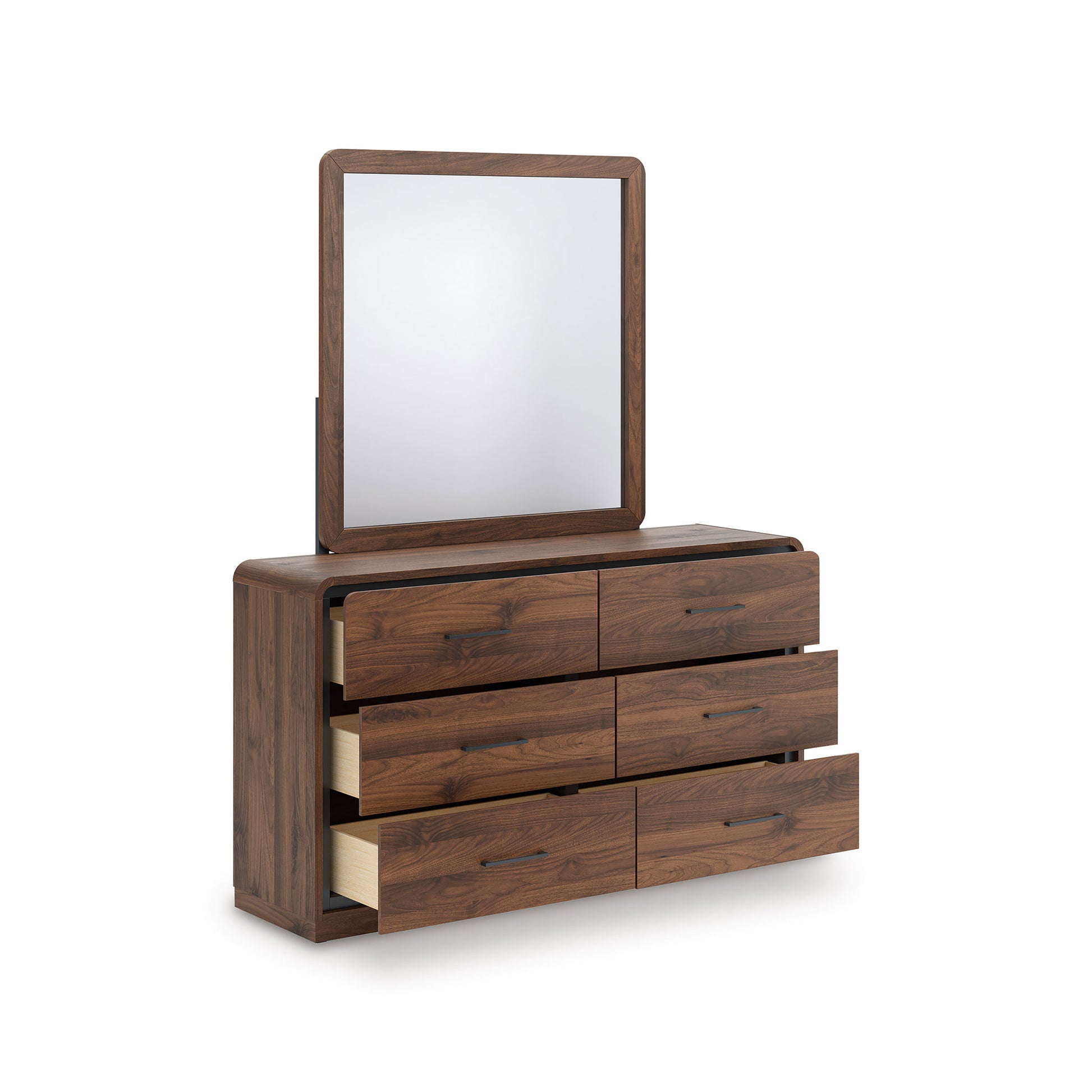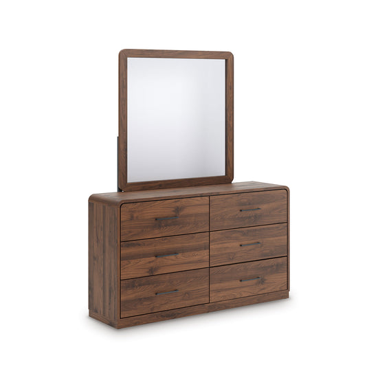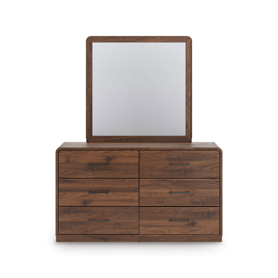 Grace your restful retreat with an added dose of refinement. This chest of drawers showcases a stunning rich brown wood tone, with sleek drawer pulls for an added layer of luxury. A rounded top softens the silhouette, elevating the look. It’s curated, contemporary and utterly chic.