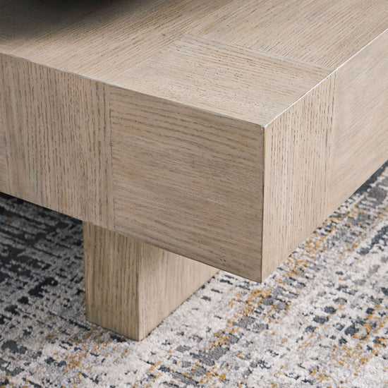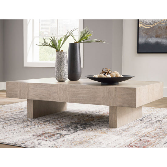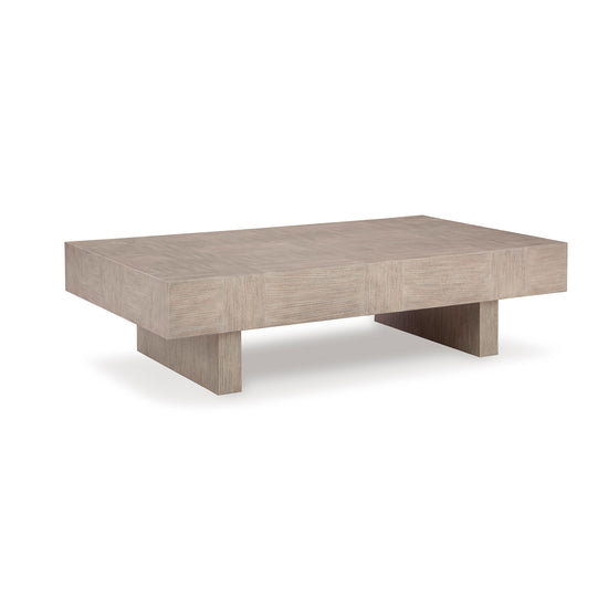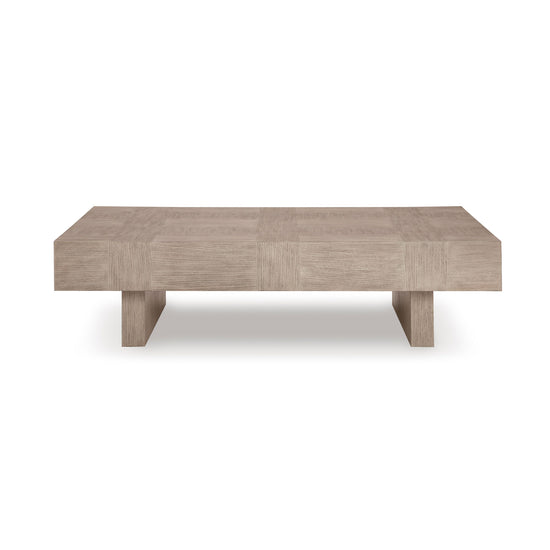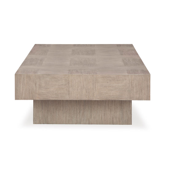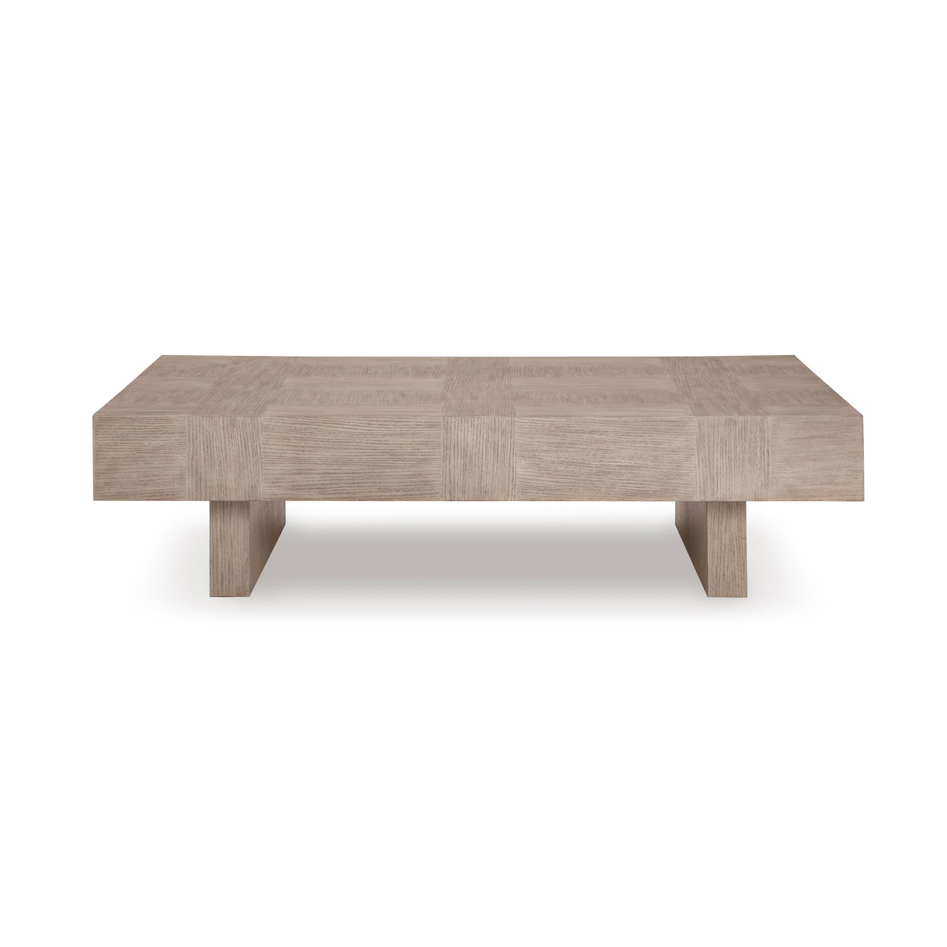 This striking coffee table looks equally at home in traditional or modern settings. A textural light gray finish offers a casual modern look, while the double plinth base exudes a classically contemporary sensibility. This timeless design adds a transitional touch that's sure to serve you well.