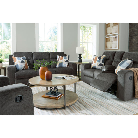 Indulgent comfort meets fashion-forward flair in this rocker recliner. Its luxuriously soft upholstery and captivating color show off your cozy yet smart style. Sleek track arms infuse a modern sensibility, while the gentle rocking motion makes this piece even more inviting. Simple pull tab reclining puts endless relaxation within easy reach.