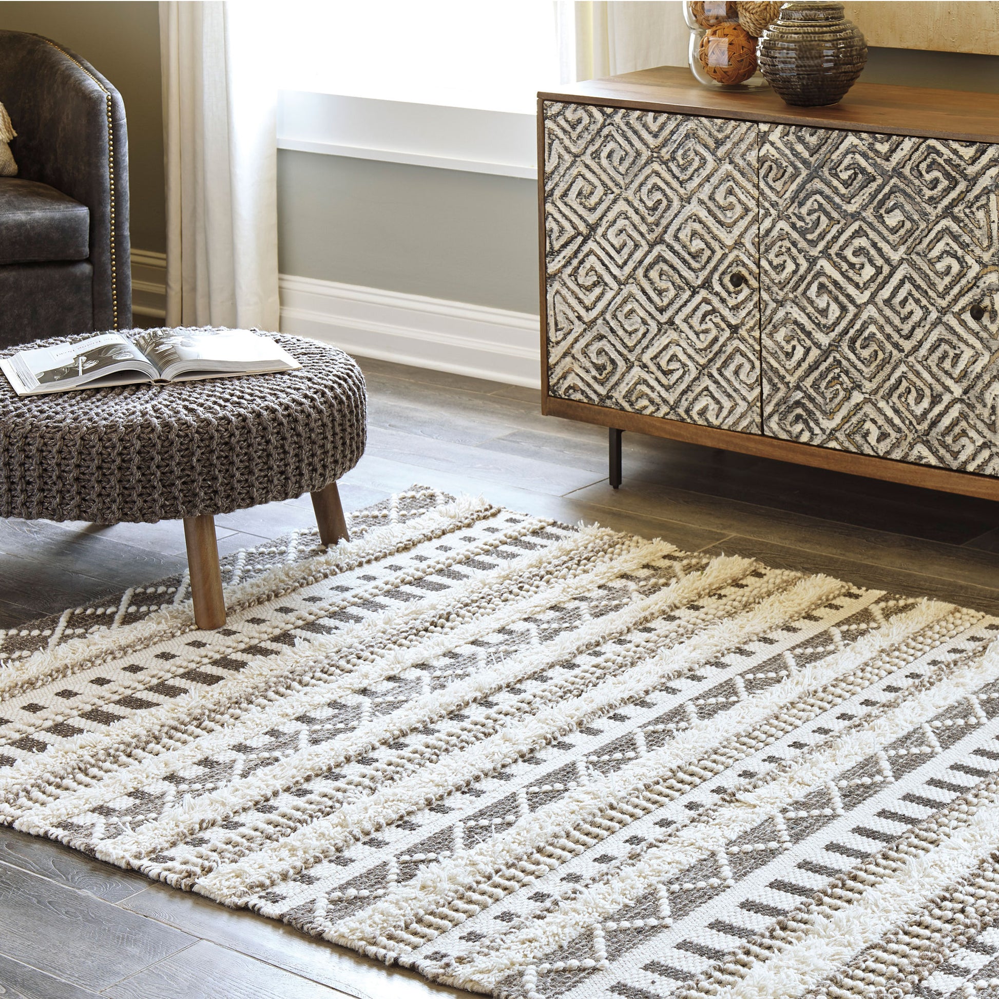 Stay on trend with tribal chic. This area rug is just neutral enough to work with your decor and just cool enough to keep your space hip. Decorate again and again on top of this dynamic floor covering; the ivory, brown and natural geometric design work so well with everything.