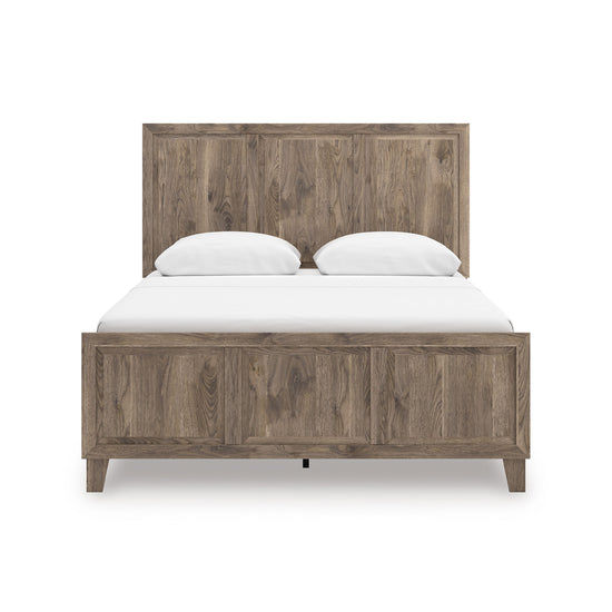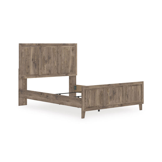 Classically chic. This queen panel bed marries traditional design with modern accents. Its deep brown finish recalls the authentic touch of hickory grain for a rich look and feel. Paneled details on the headboard add delightful dimension. Sincere in its styling, this piece sets the scene for a warm, welcoming vibe in your bedroom.