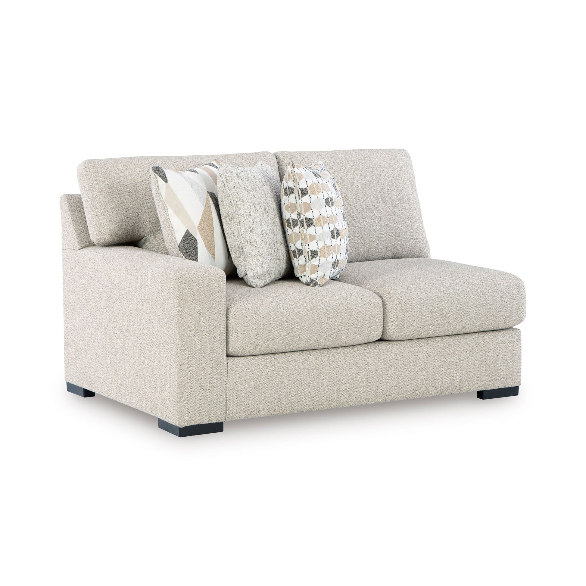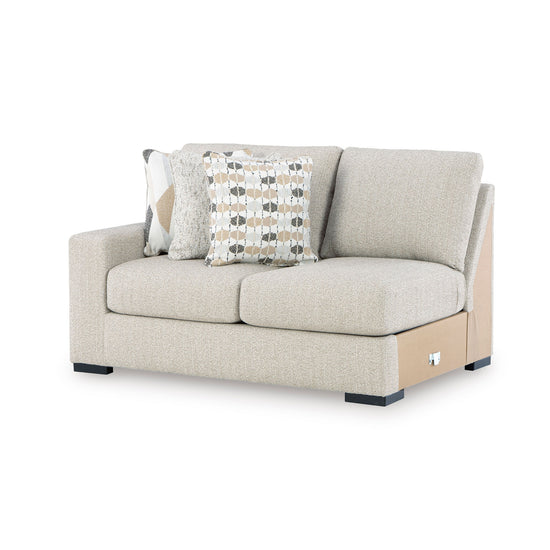 This left-arm facing loveseat is made with Next-Gen Nuvella™ (polyester) fade-resistant, washable fabric. Pairs with other items in the series to make a sectional.