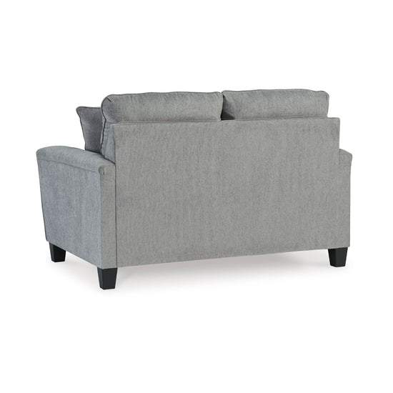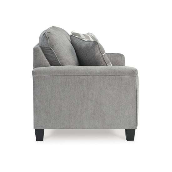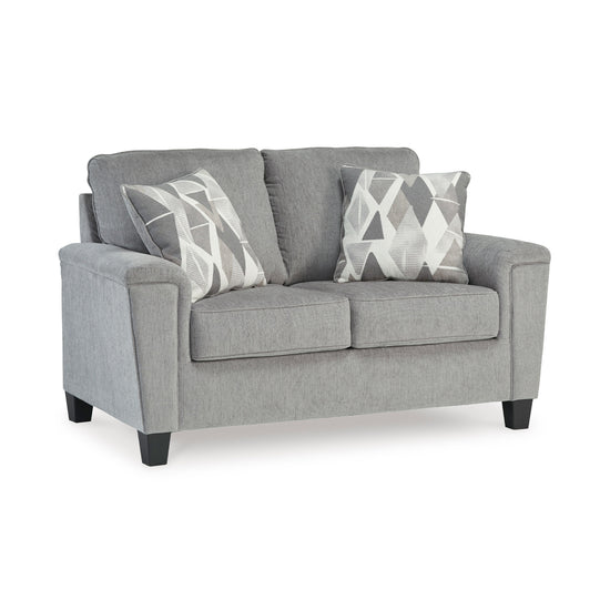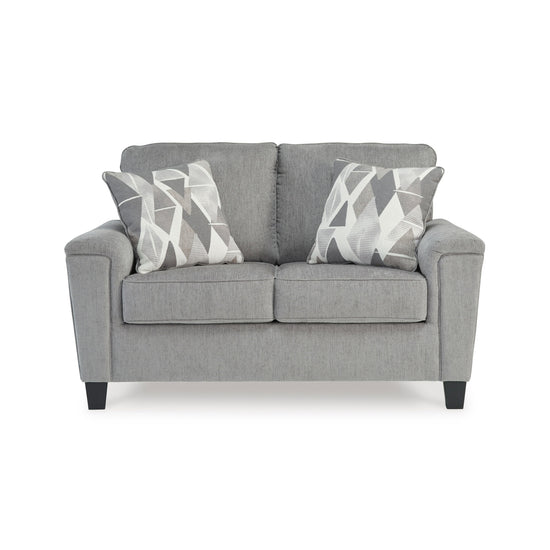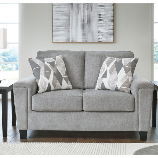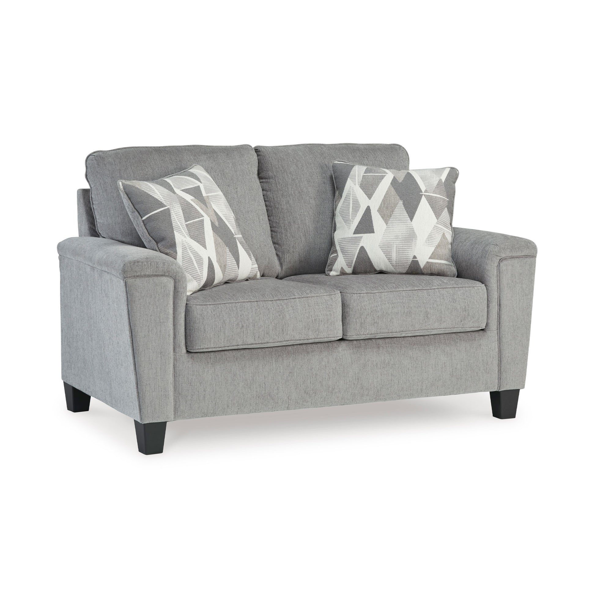 This loveseat offers an updated profile and contemporary design. With its stylish design and cozy feel, it's ideal for relaxation and entertainment. Complete with padded arms and welted cushions in a versatile light gray color, this piece seamlessly complements various interiors. And when you thought it couldn't get any better, the accent pillows add a layer of visual dimension, taking it to the next level.