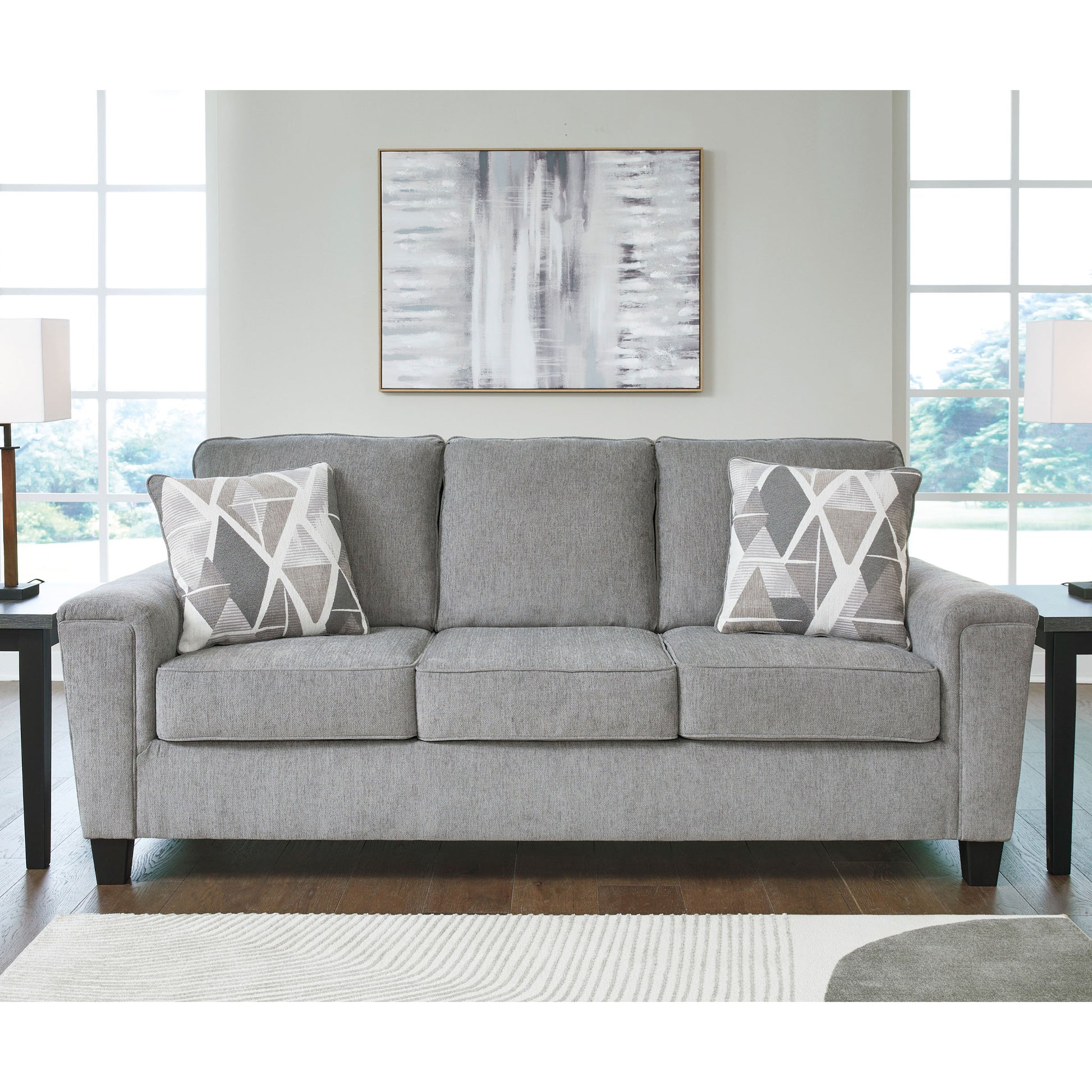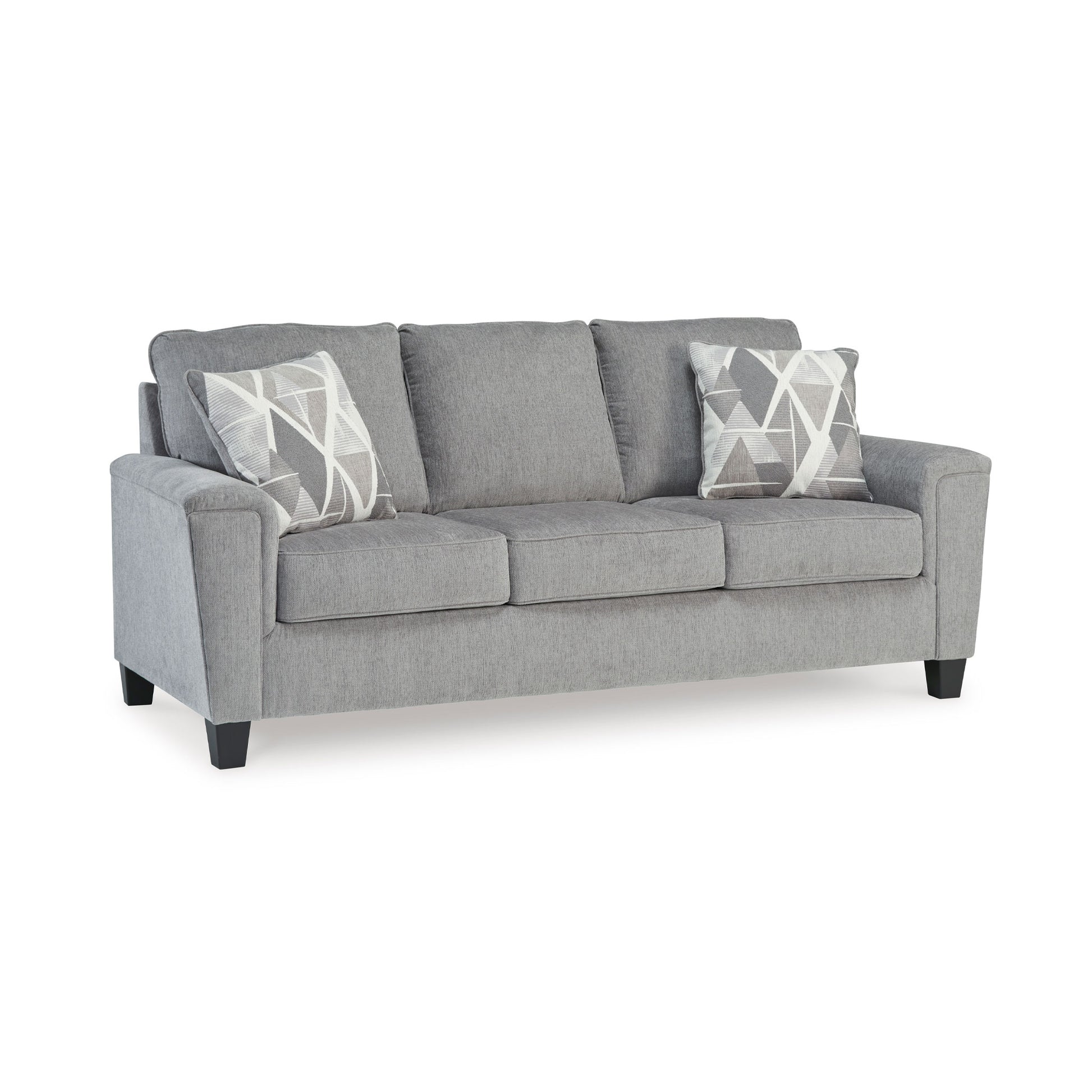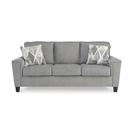 This sofa offers an updated profile and contemporary design. With its stylish design and cozy feel, it's ideal for relaxation and entertainment. Complete with padded arms and welted cushions in a versatile light gray color, this piece seamlessly complements various interiors. And when you thought it couldn't get any better, the accent pillows add a layer of visual dimension, taking it to the next level.