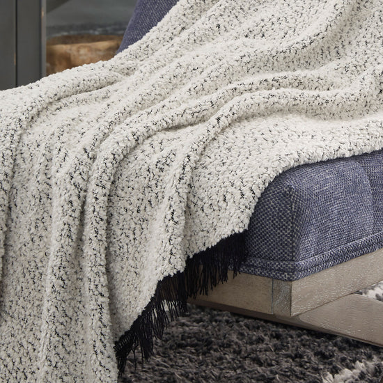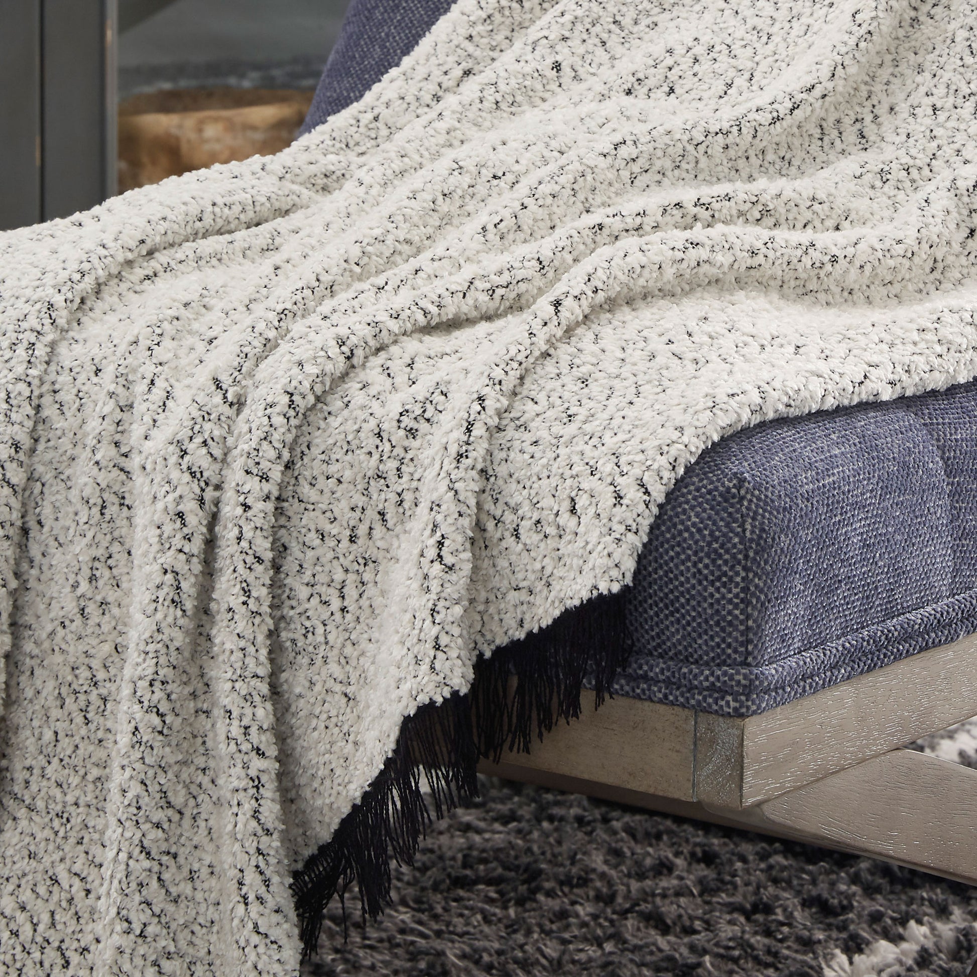 Ultra-plush softness and cozy warmth make this throw nice to have around the house. Flirty black fringe and soft chenille merge a sumptuous soft feel with a richly artisan sense of style.