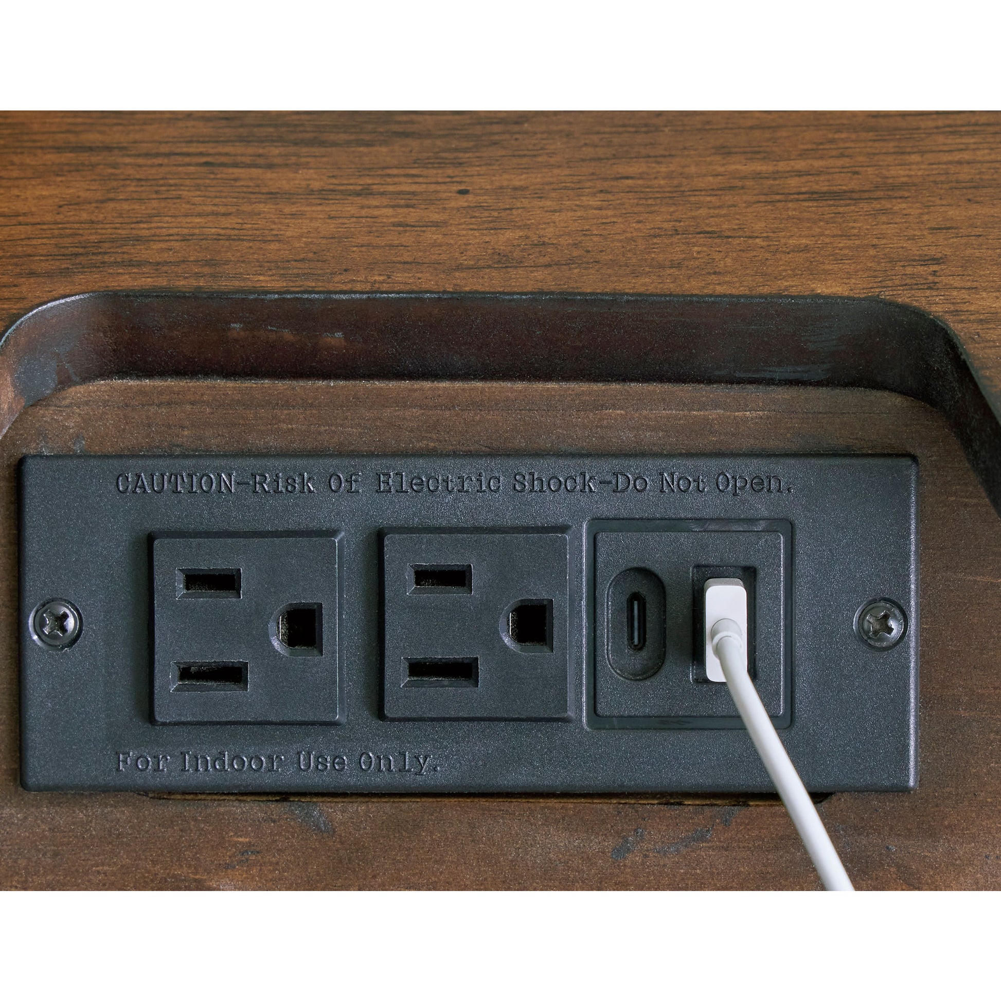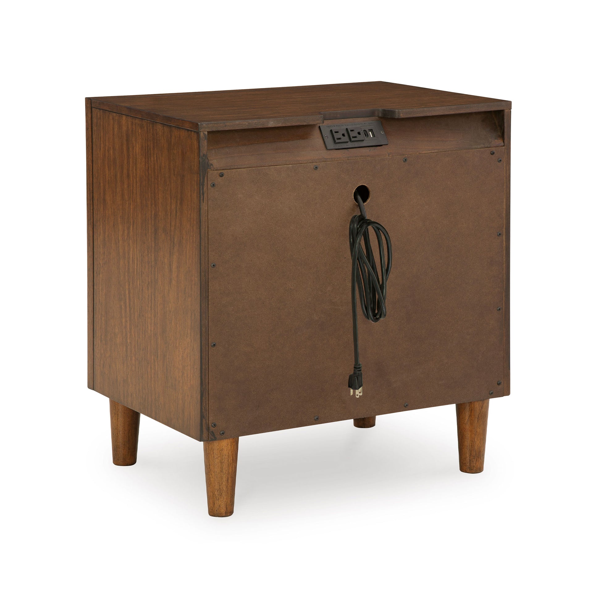 Nightstand includes 2 smooth-gliding drawers with dovetail construction and integrated USB-A and USB-C charging ports (110V power supply included; UL Listed)