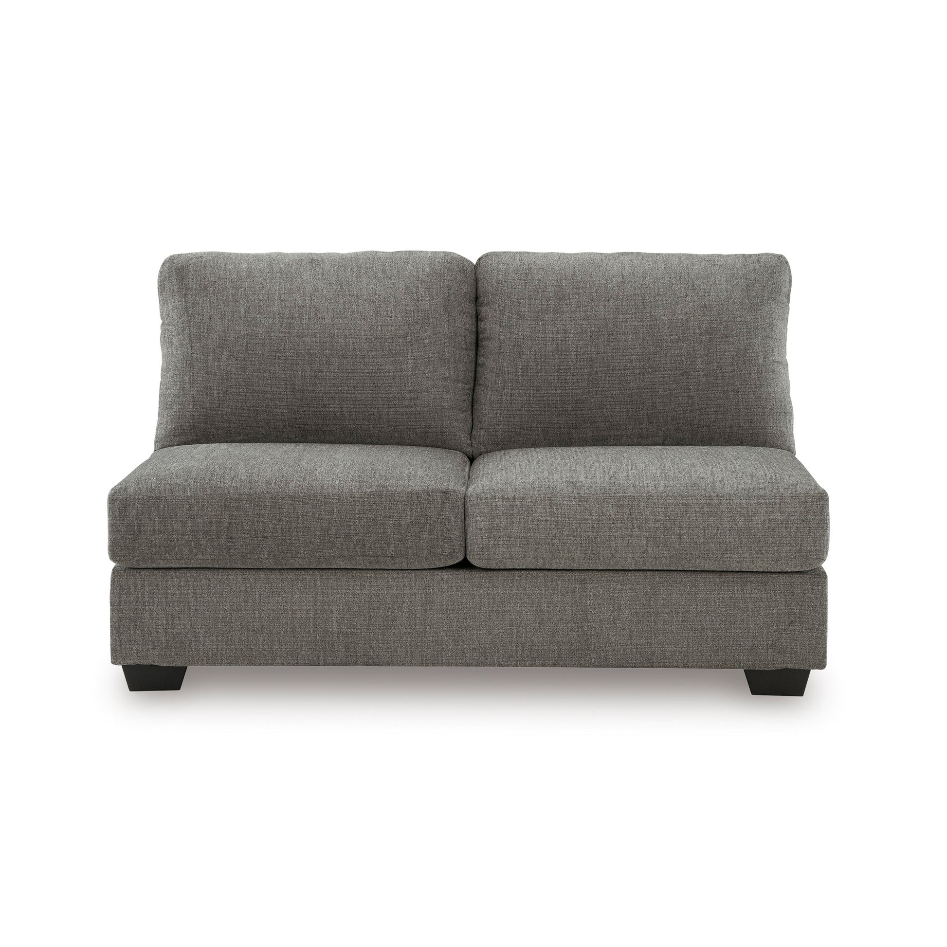 This armless loveseat is made with polyester upholstery. Pairs with other items in the series to make a sectional.