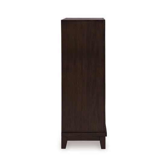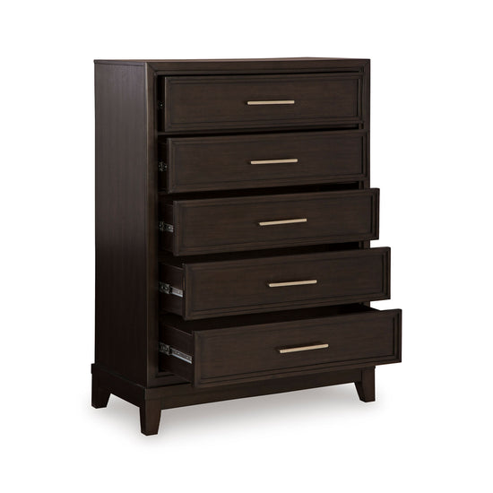 - 5 smooth-gliding drawers with dovetail construction and heavy duty ball-bearing side glides (top drawers felt lined)