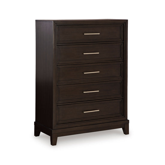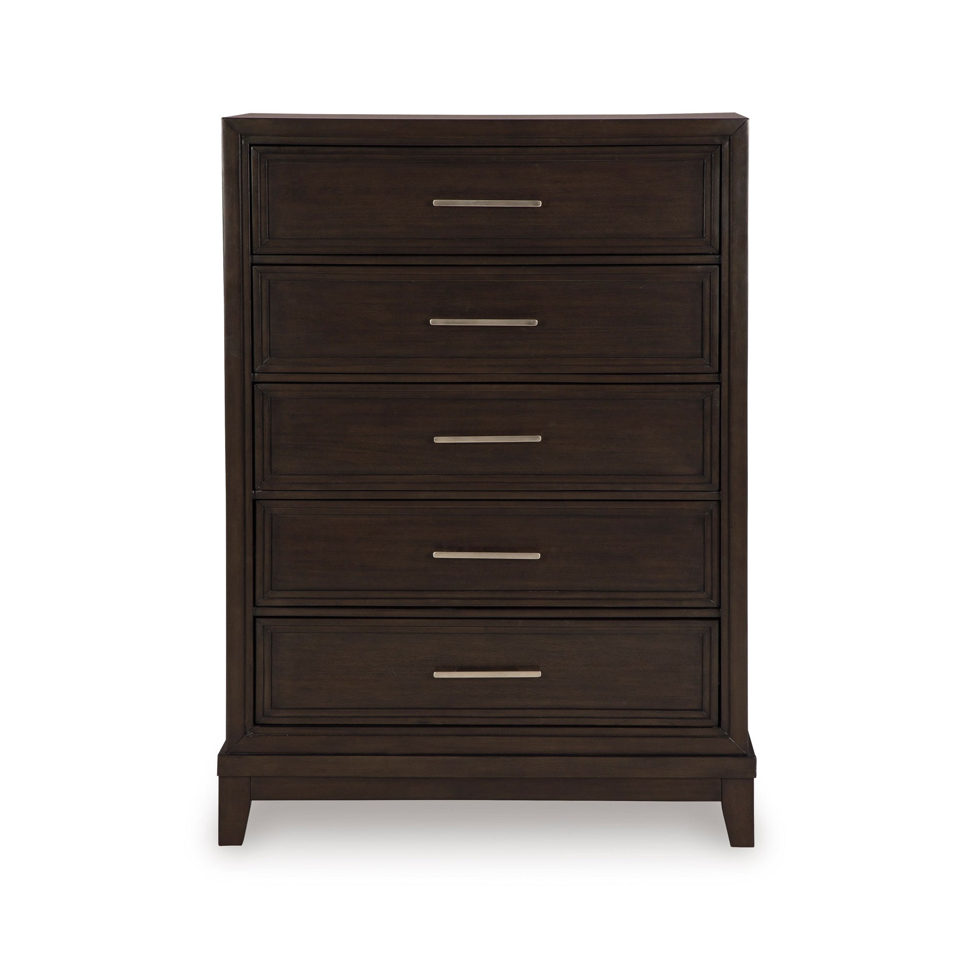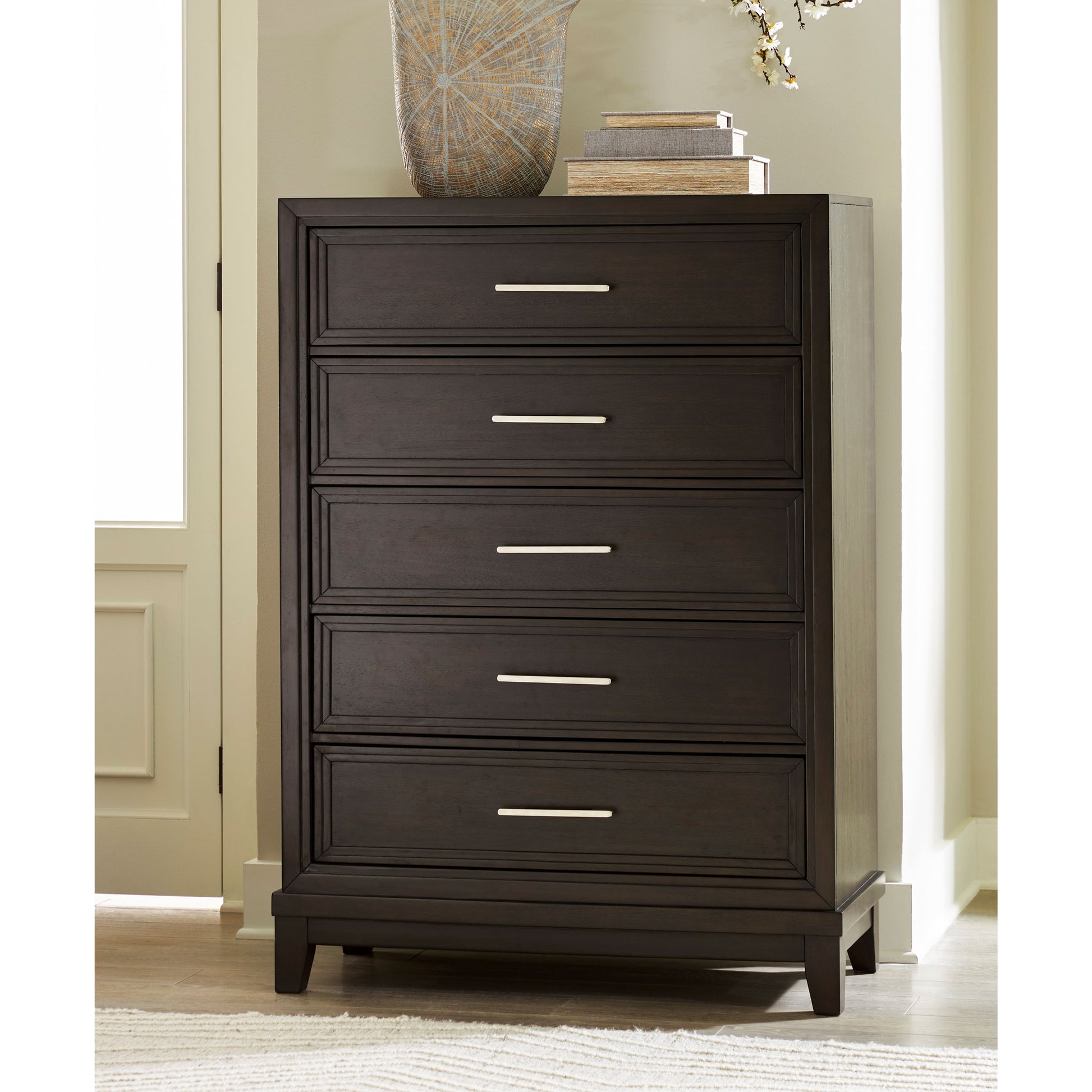 This chest of drawers combines modern and art deco styles for both traditional and contemporary arrangements. With elegant stepped moulded framing and ample storage, it adds dimension to your sanctuary while keeping your belongings organized and clutter-free. Indulge in a fresh look that feels right at home.