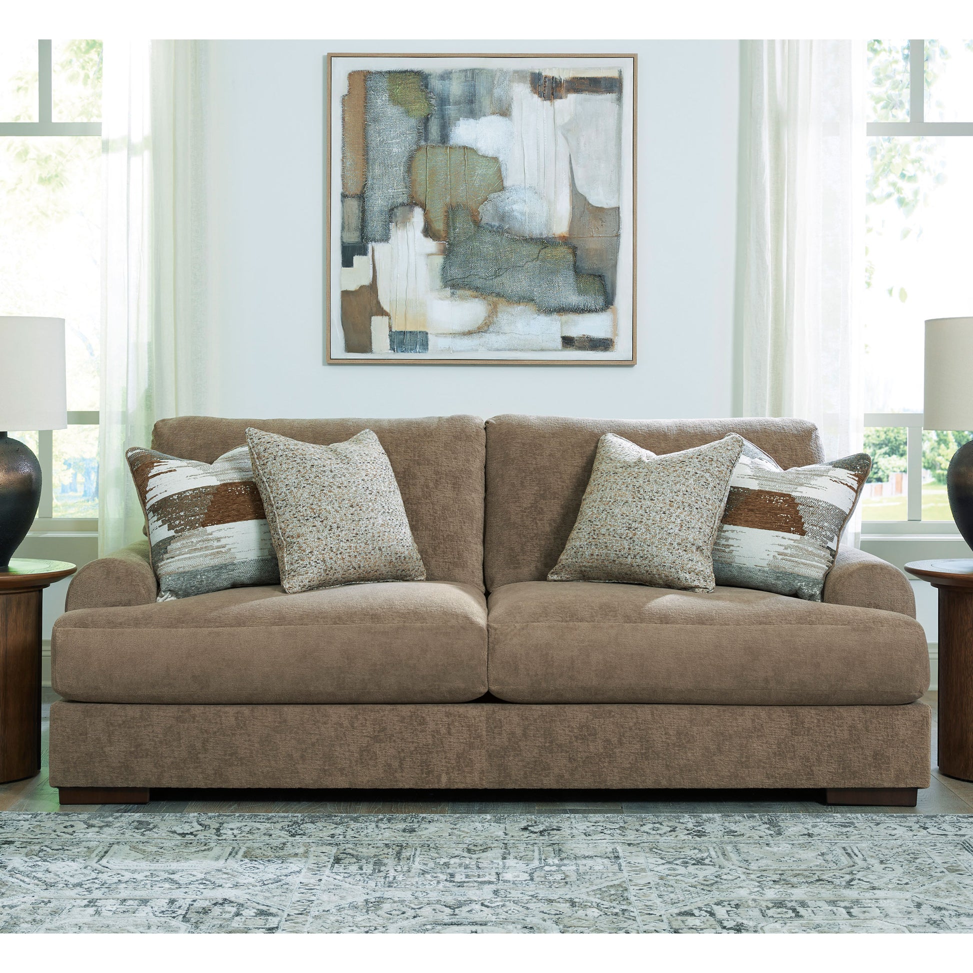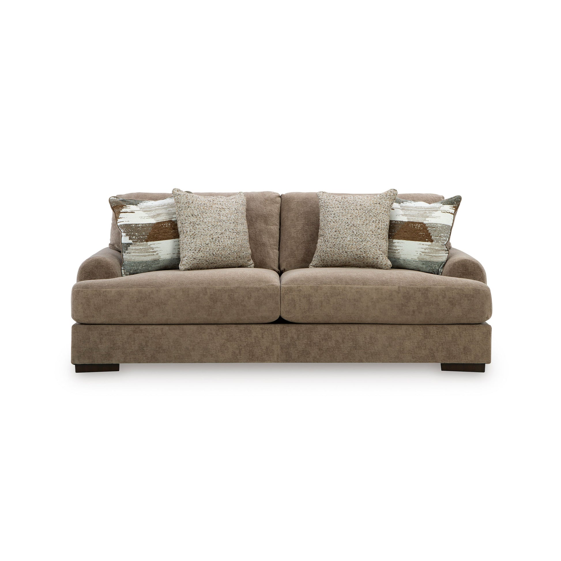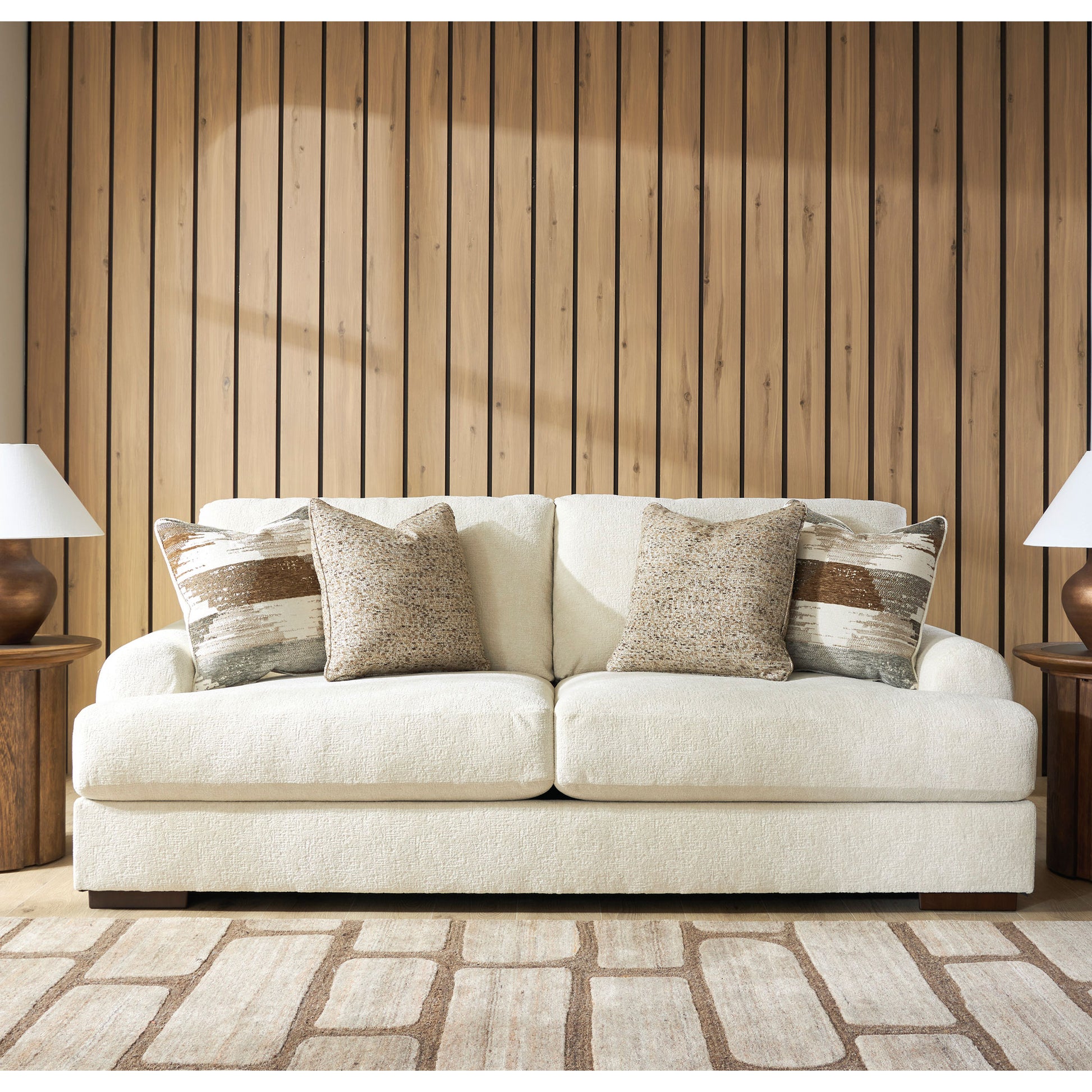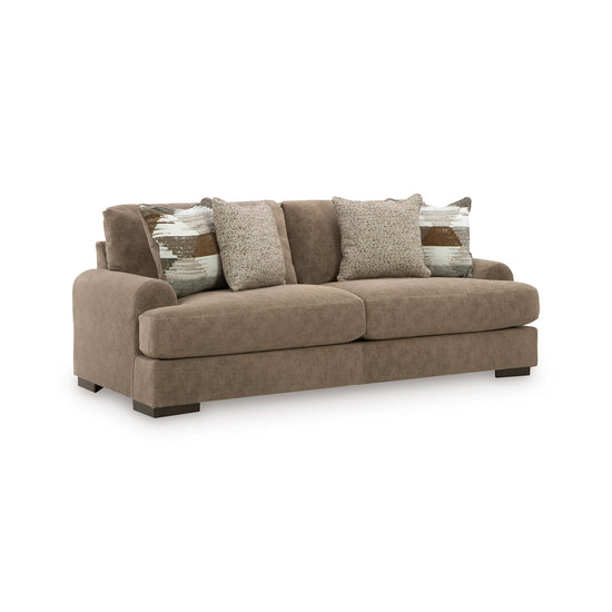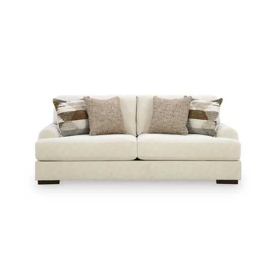 Sink into the captivating comfort of this sofa. Its plush reversible cushions invite you to stretch out, making it an ideal spot for movie nights, afternoon naps or catching up with friends. Softly curved arms add a lovely sense of flow, while velvety soft upholstery in a warm hue pairs effortlessly with a variety of color palettes for an easy pulled-together look. Accent pillows add texture and pattern, so your space feels stylish as well as incredibly cozy.