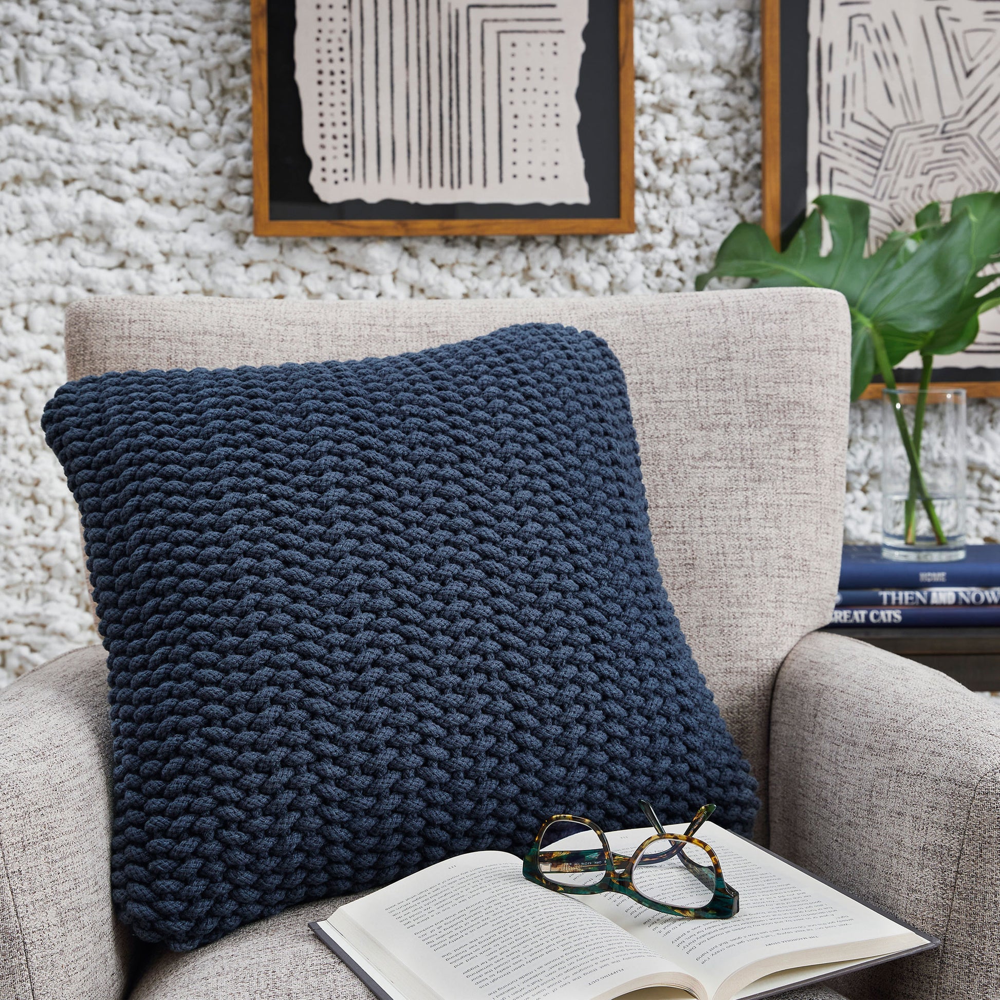 Simply chic, this pillow welcomes cozy style to your sofa, sectional or bed. Its deep blue hue and inviting handwoven design complete casual and coastal retreats alike, adding a stylish touch to your reading nook or lounge area.