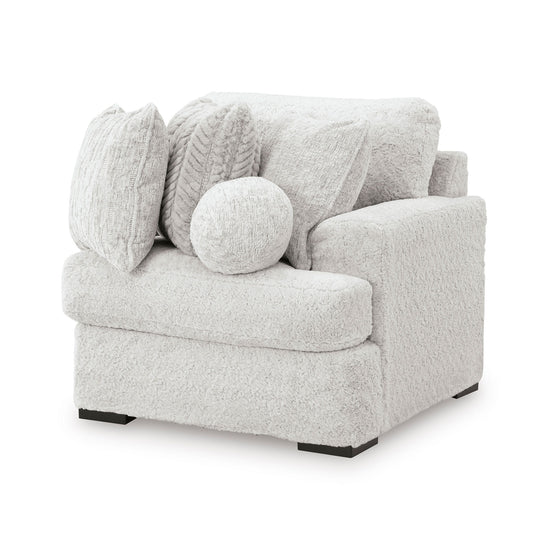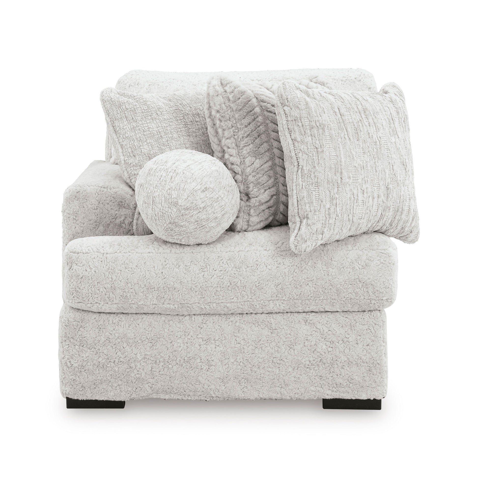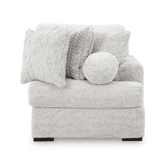 This left-arm or right-arm facing corner chair is made with polyester upholstery. Fully finished on all sides, it pairs with other items in the series to make a modular sectional.