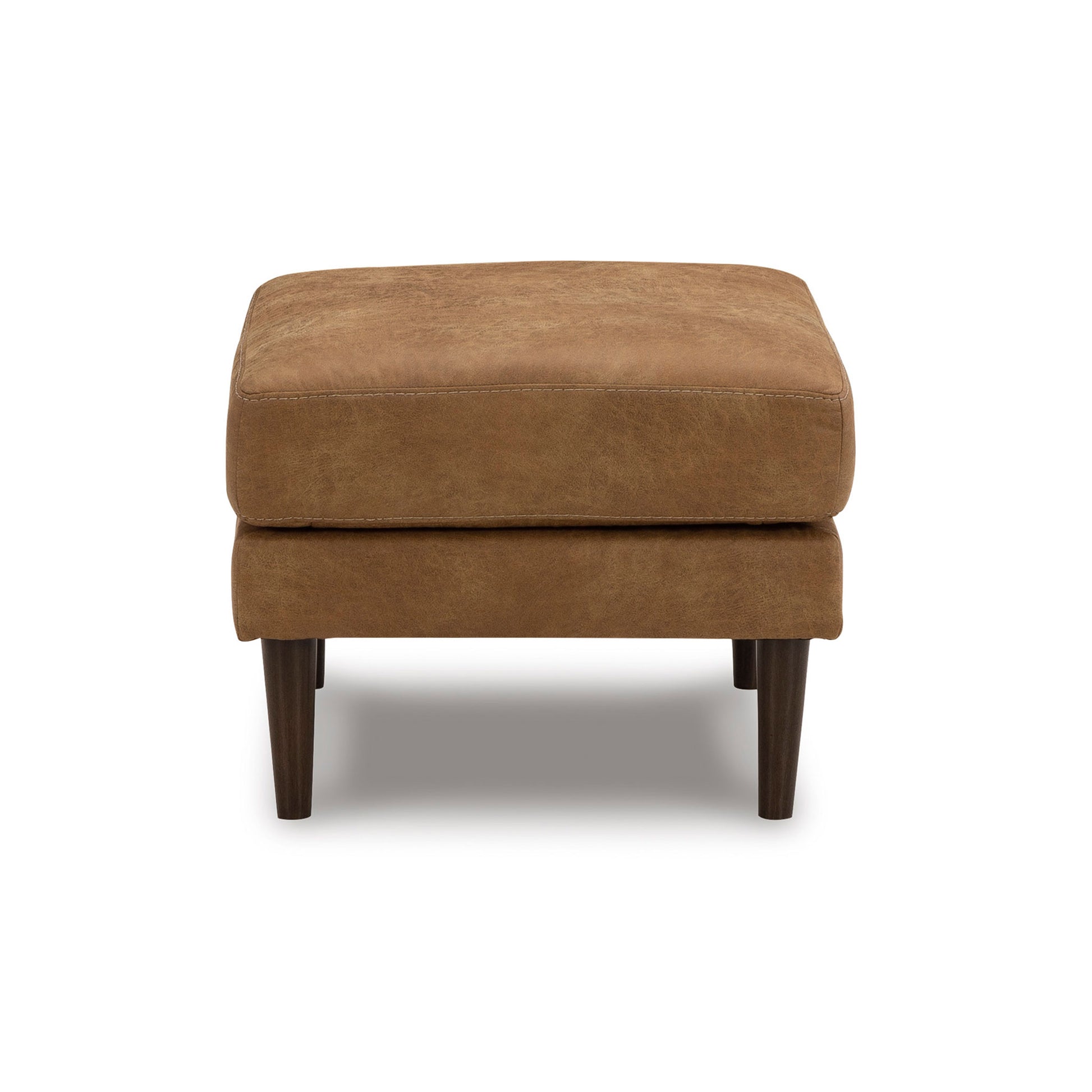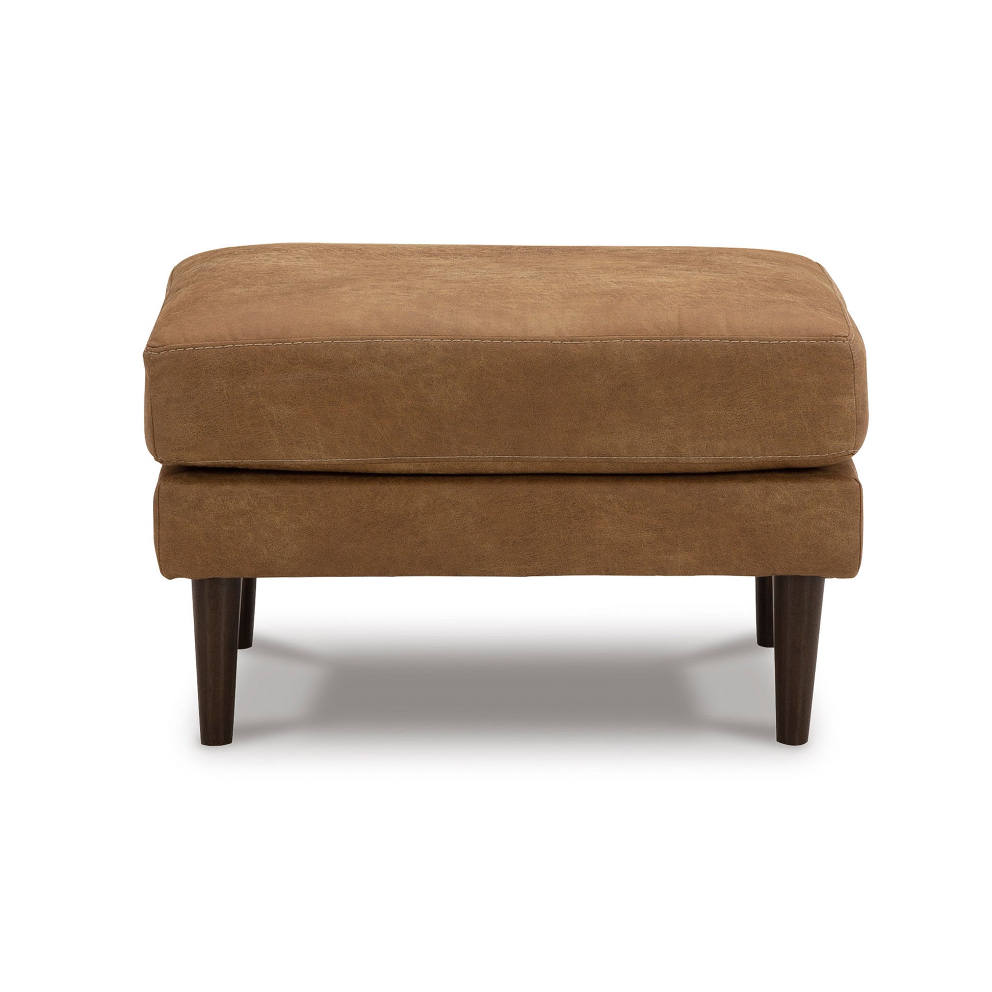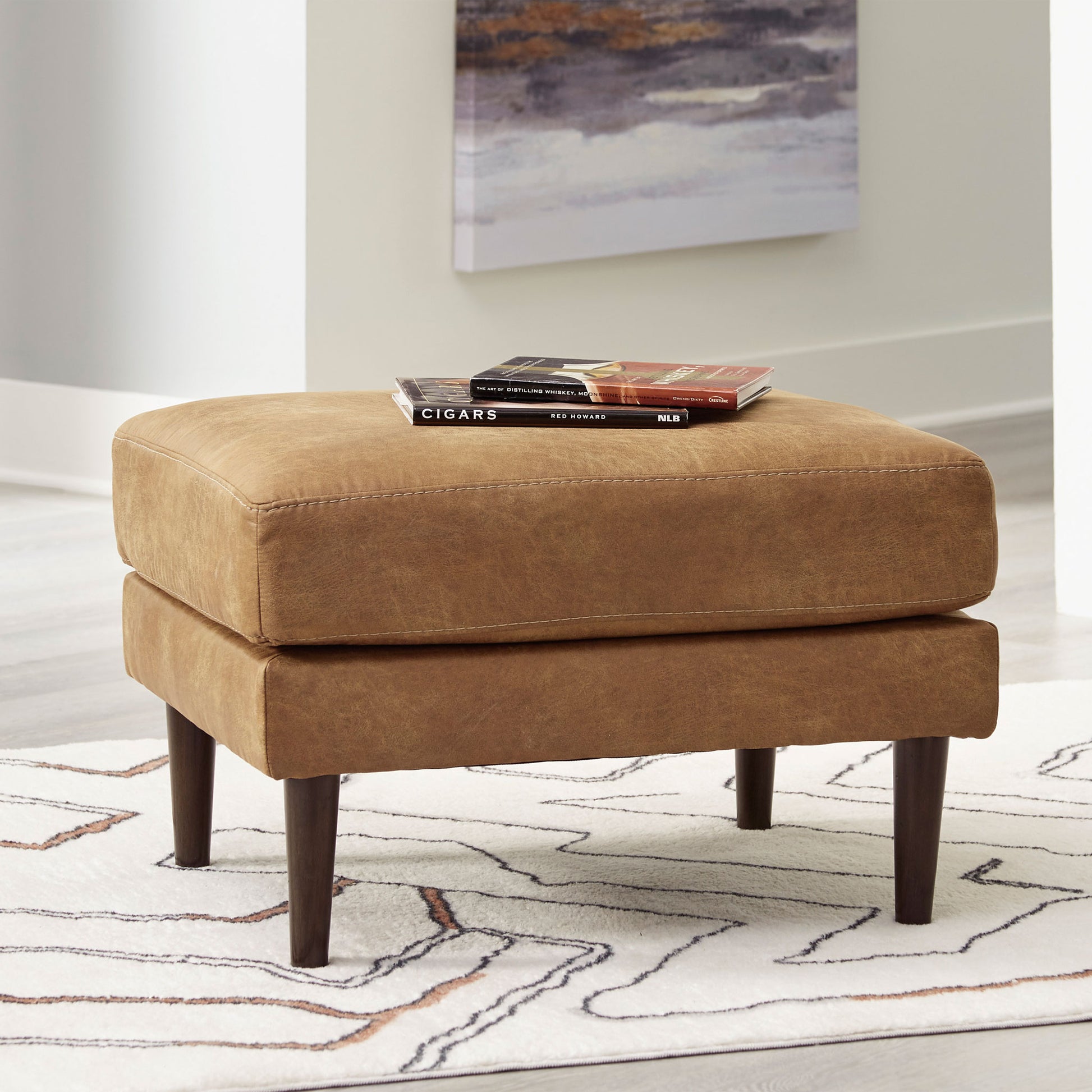 Small-scale style, tailored to perfection. This ottoman echoes retro aesthetics with warm caramel faux leather, while its ultra-linear silhouette incorporates a contemporary edge. Versatile in form and function, the companion piece suits styles from modern boho to transitional. And its size helps you to confidently curate your compact space without sacrificing comfort (or your budget).