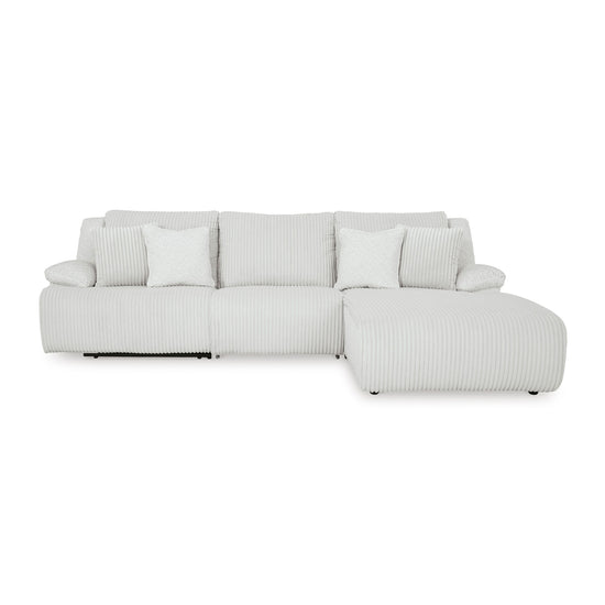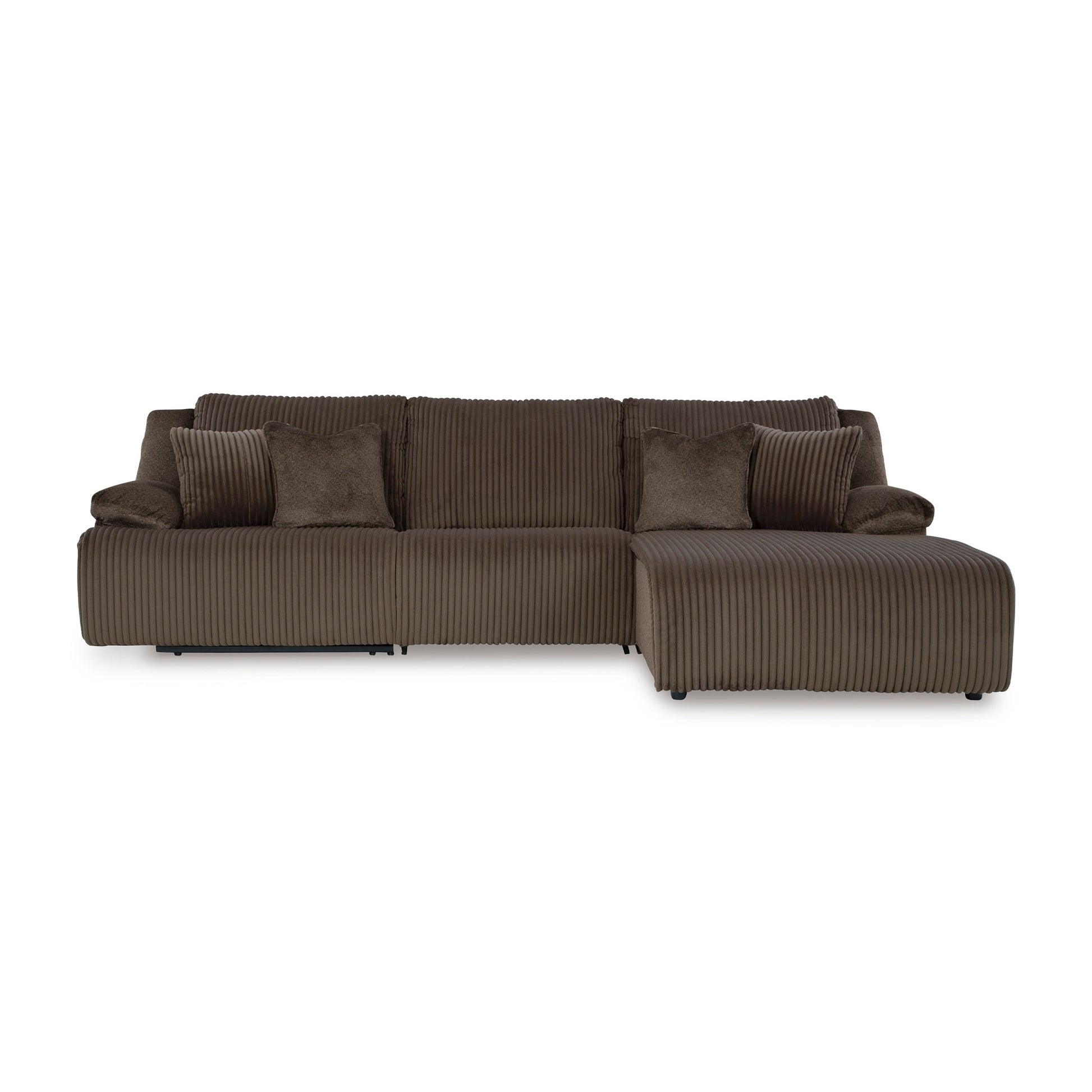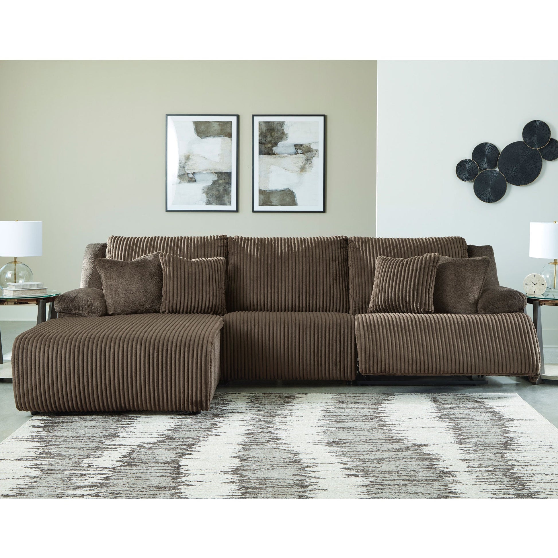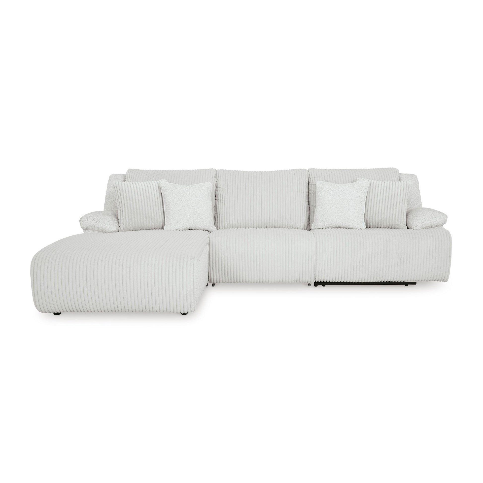 - Includes 3 pieces: left-arm facing recliner, armless chair and right-arm facing press back chaise