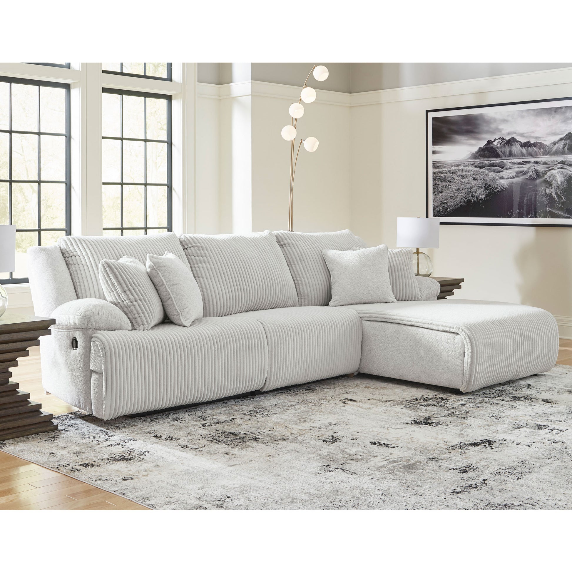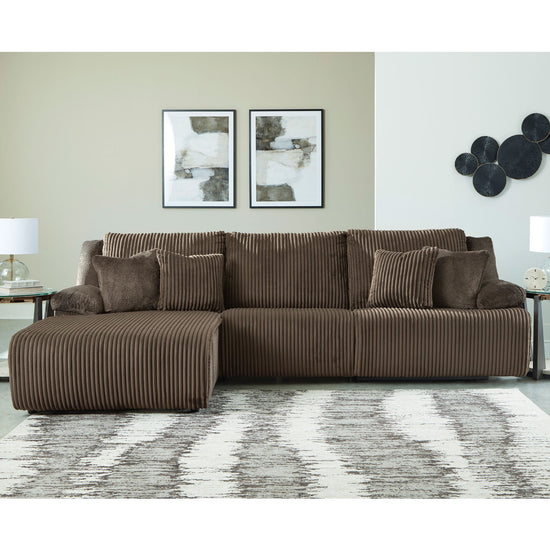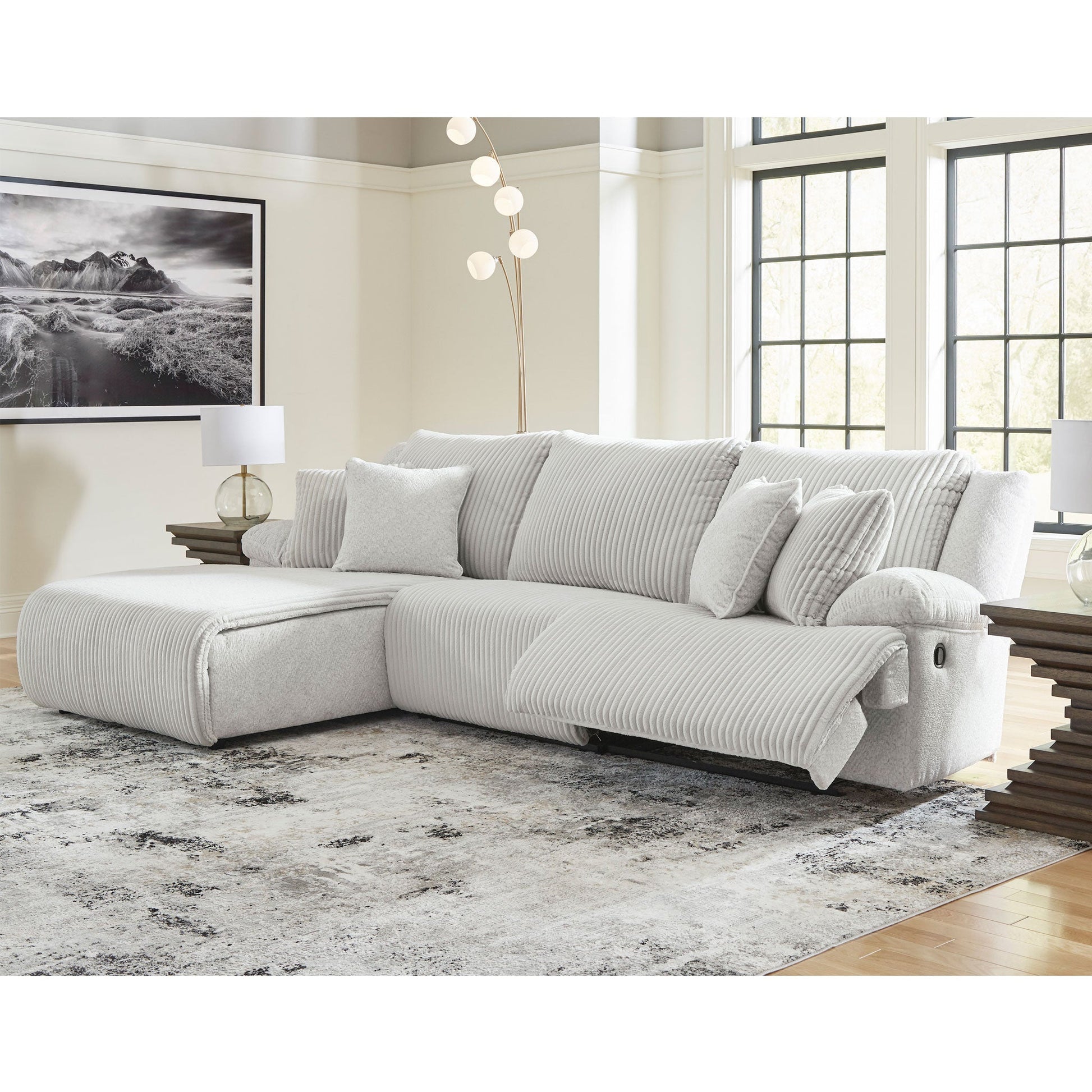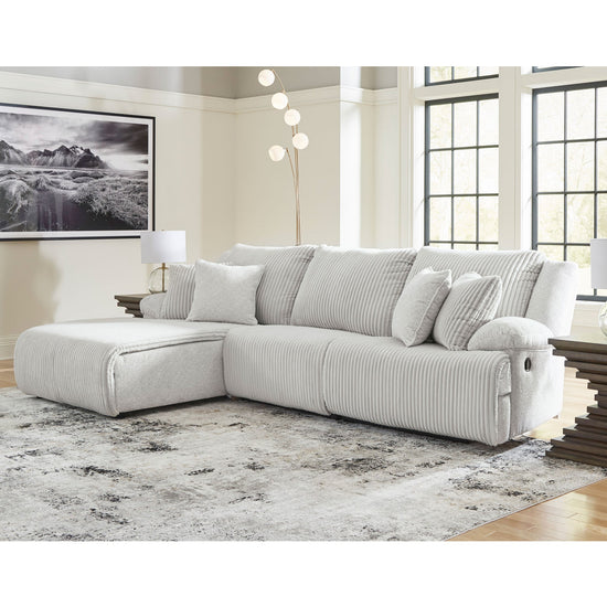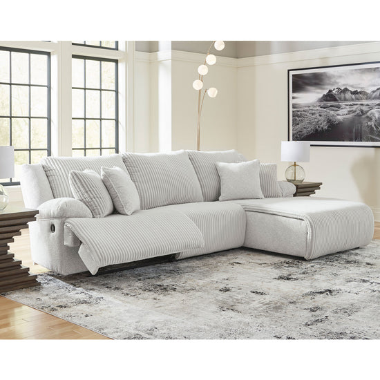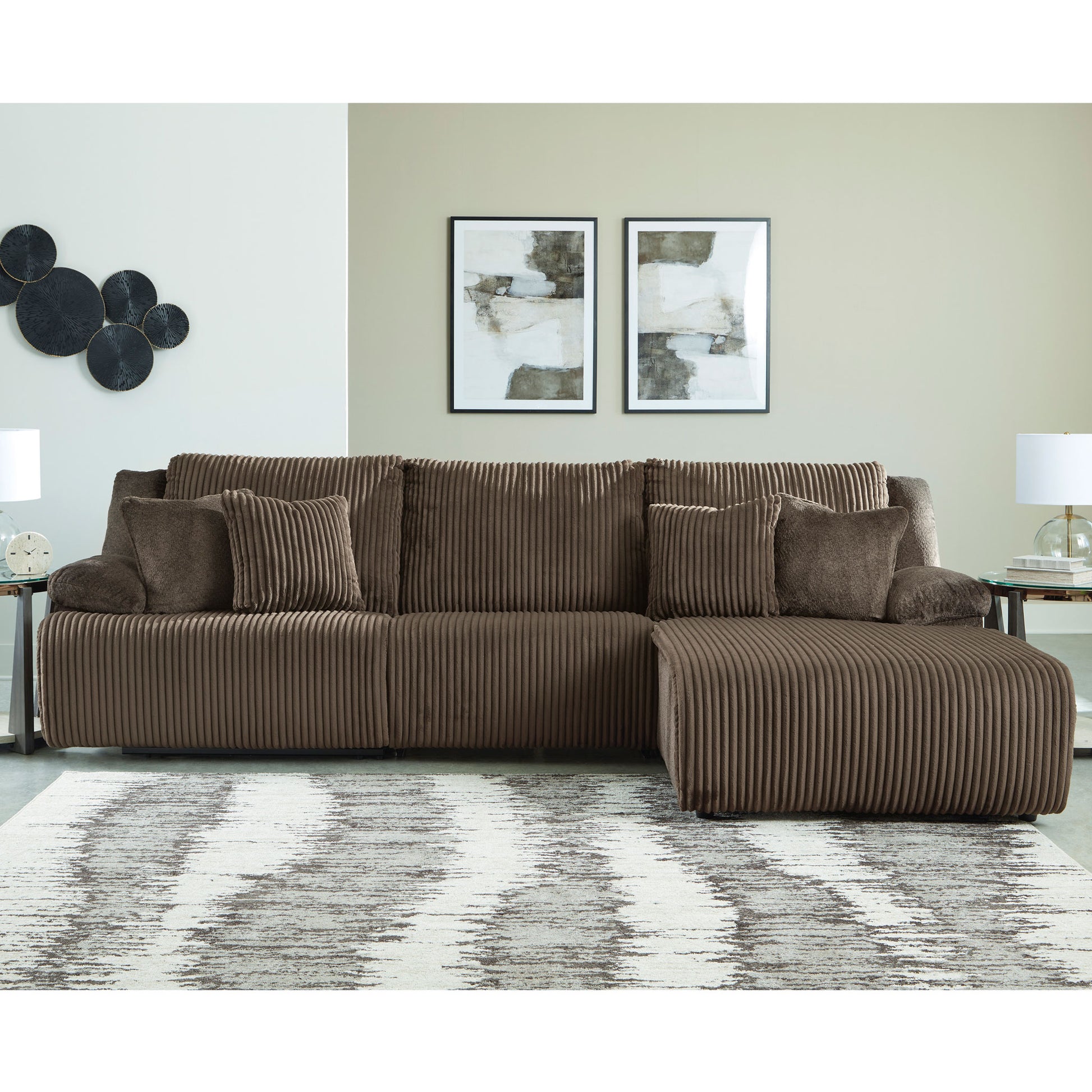 - Includes 3 pieces: left-arm facing recliner, armless chair and right-arm facing press back chaise