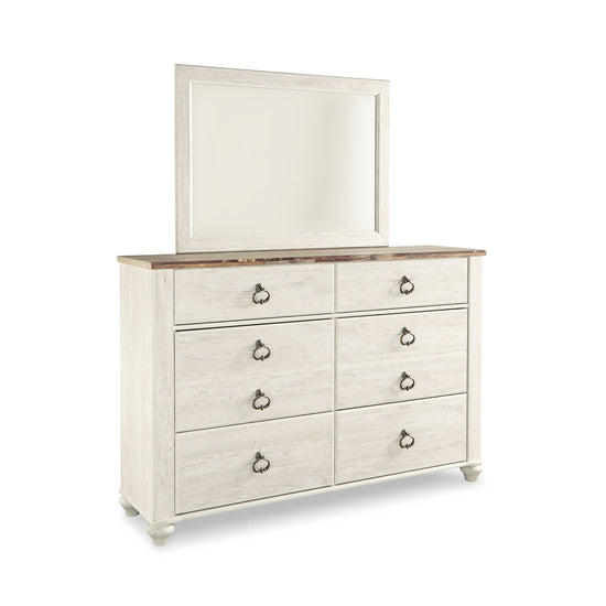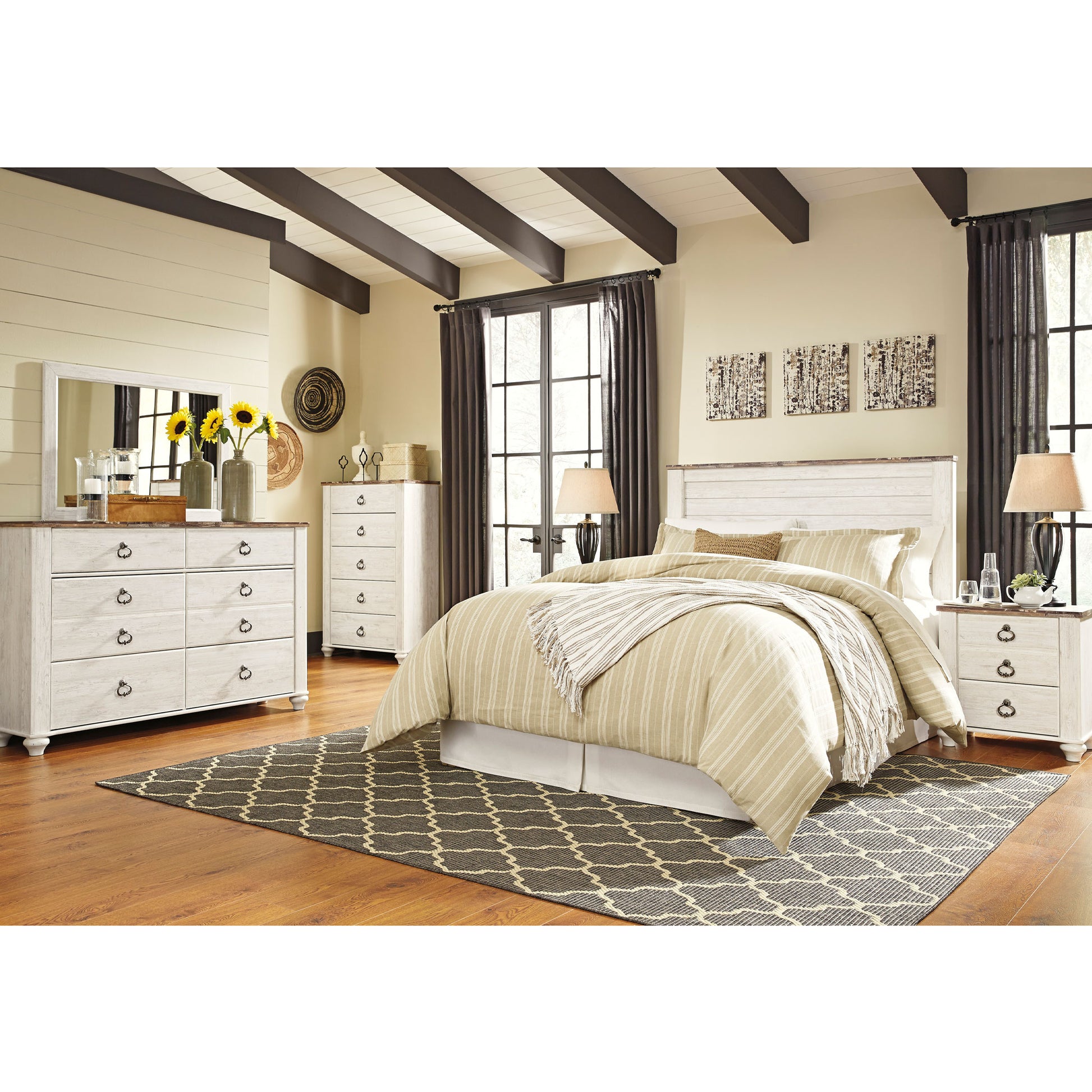 Escape to a space of coastal calm and cottage charm with the Willowton Bedroom Set. Blending a whitewashed finish with driftwood-inspired detailing, this collection evokes the breezy ease of a seaside retreat. Antiqued brass-tone hardware and plank-effect textures complete the look, creating a relaxed, lived-in style that feels like home.