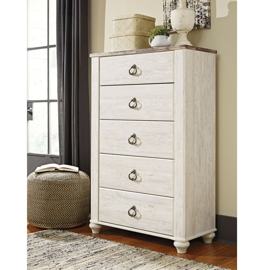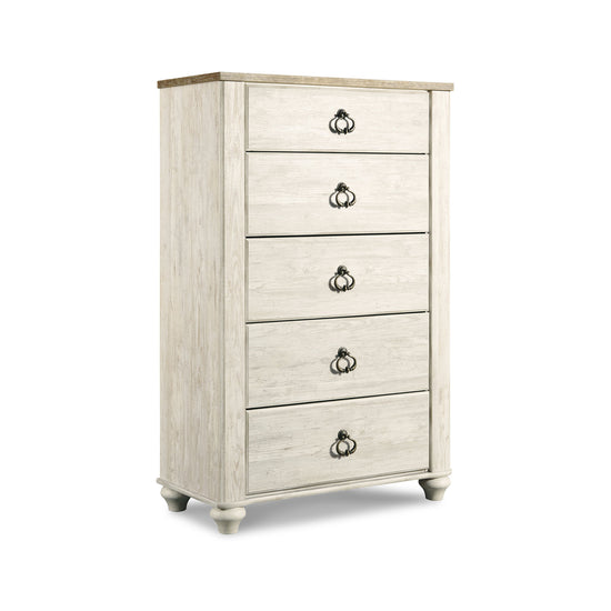 This chest of drawers is the ultimate statement piece for your coastal cottage or shabby chic inspired retreat. A whitewash finish on the drawers and sides is wonderfully easy on the eyes. Paired with the unique plank-effect top, it’s a driftwoody look that has our minds drifting away to beachy-keen escapes.